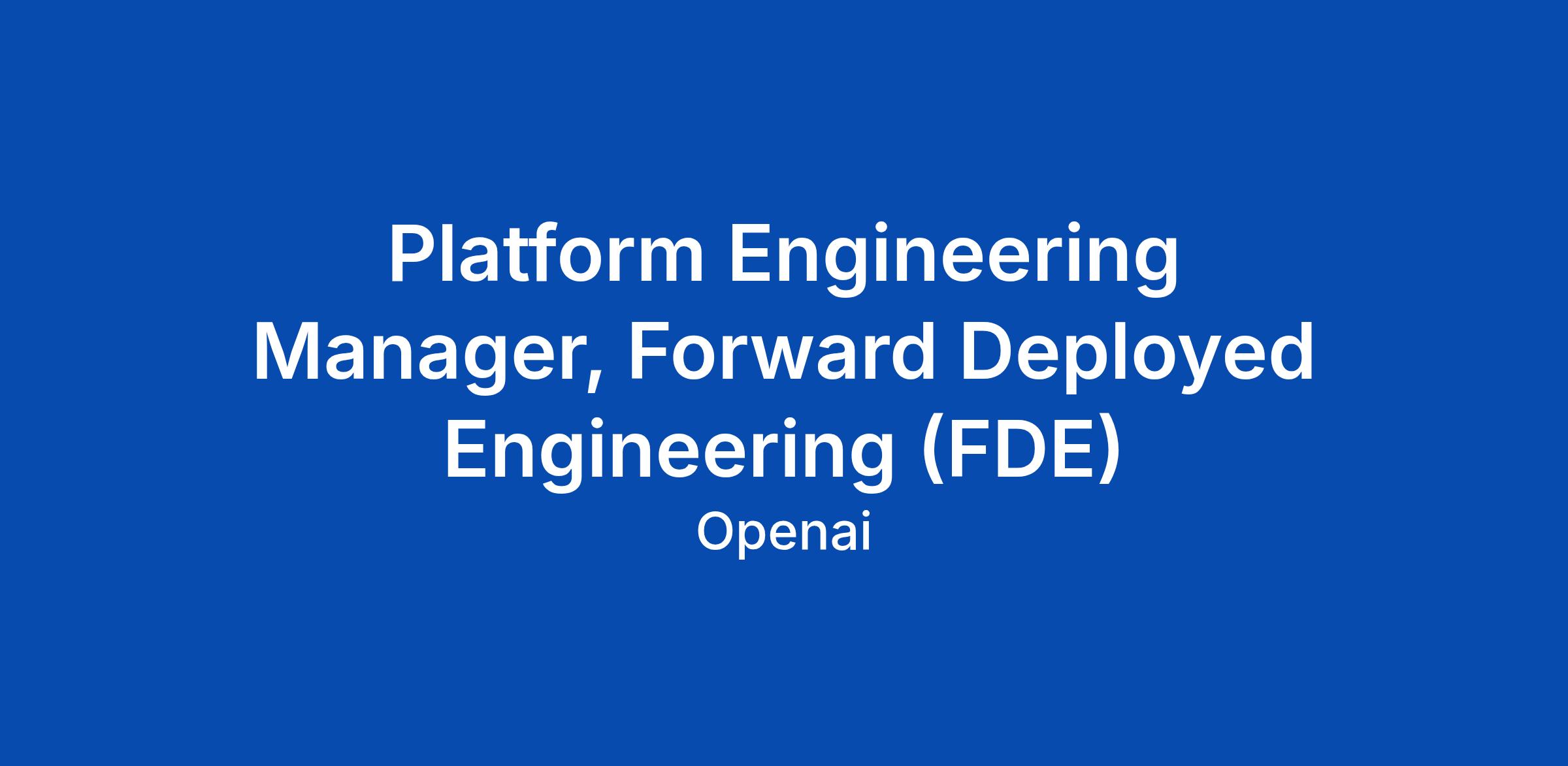 Platform Engineering Manager, Forward Deployed Engineering (FDE)