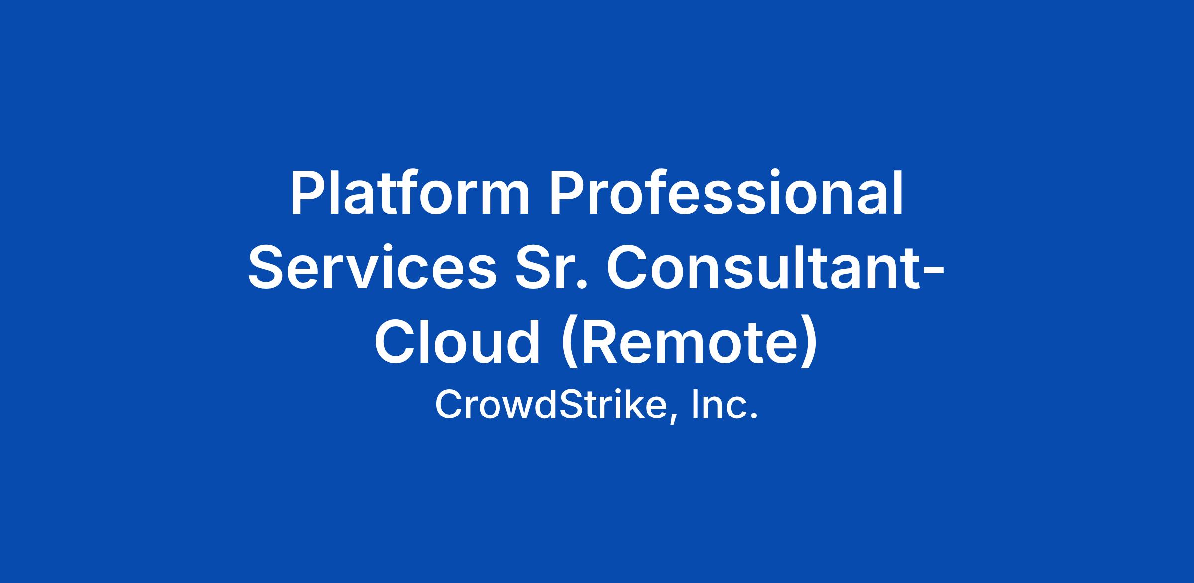 CrowdStrike Services is seeking a Senior Platform Professional Services Consultant responsible for the planning, deployment, and operational support of the CrowdStrike Falcon Cloud Security platform and related applications. The Senior Platform Consultant role requires a wide range of technical skills such as knowledge of cloud security best practices, configuration management, CI/CD pipelines, containerization, scripting, and infrastructure as code.