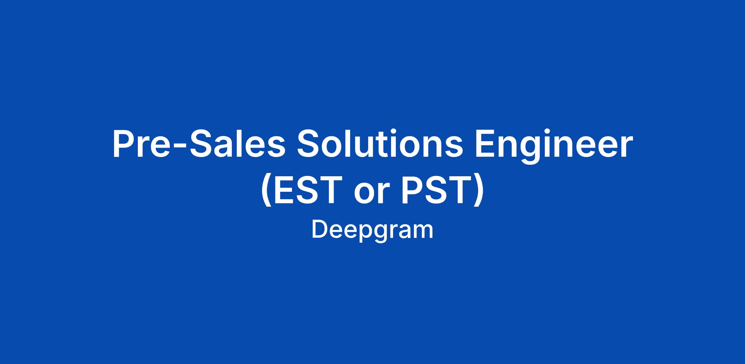 Pre-Sales Solutions Engineer (EST or PST)