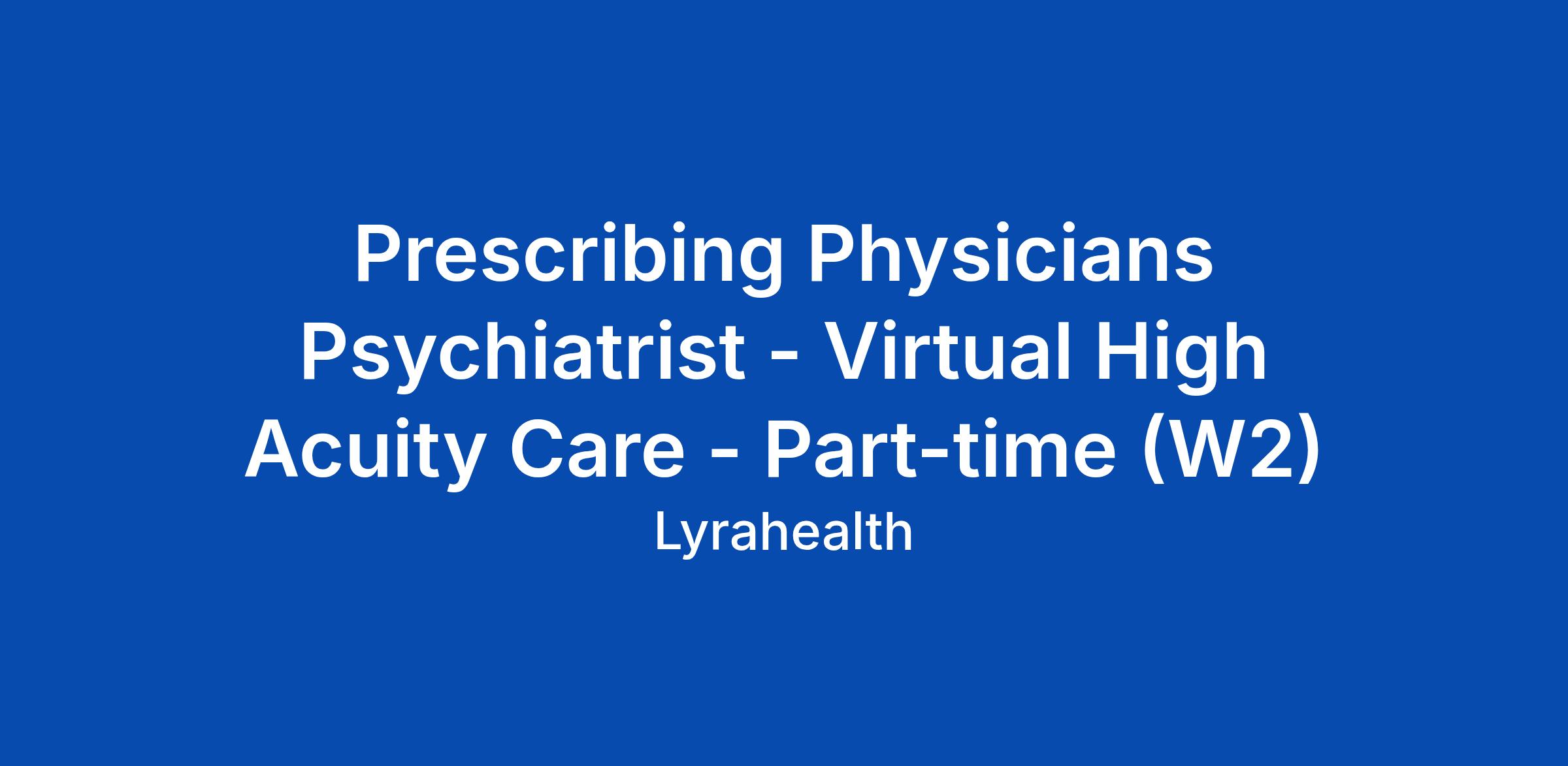 Prescribing Physicians Psychiatrist - Virtual High Acuity Care - Part-time (W2)