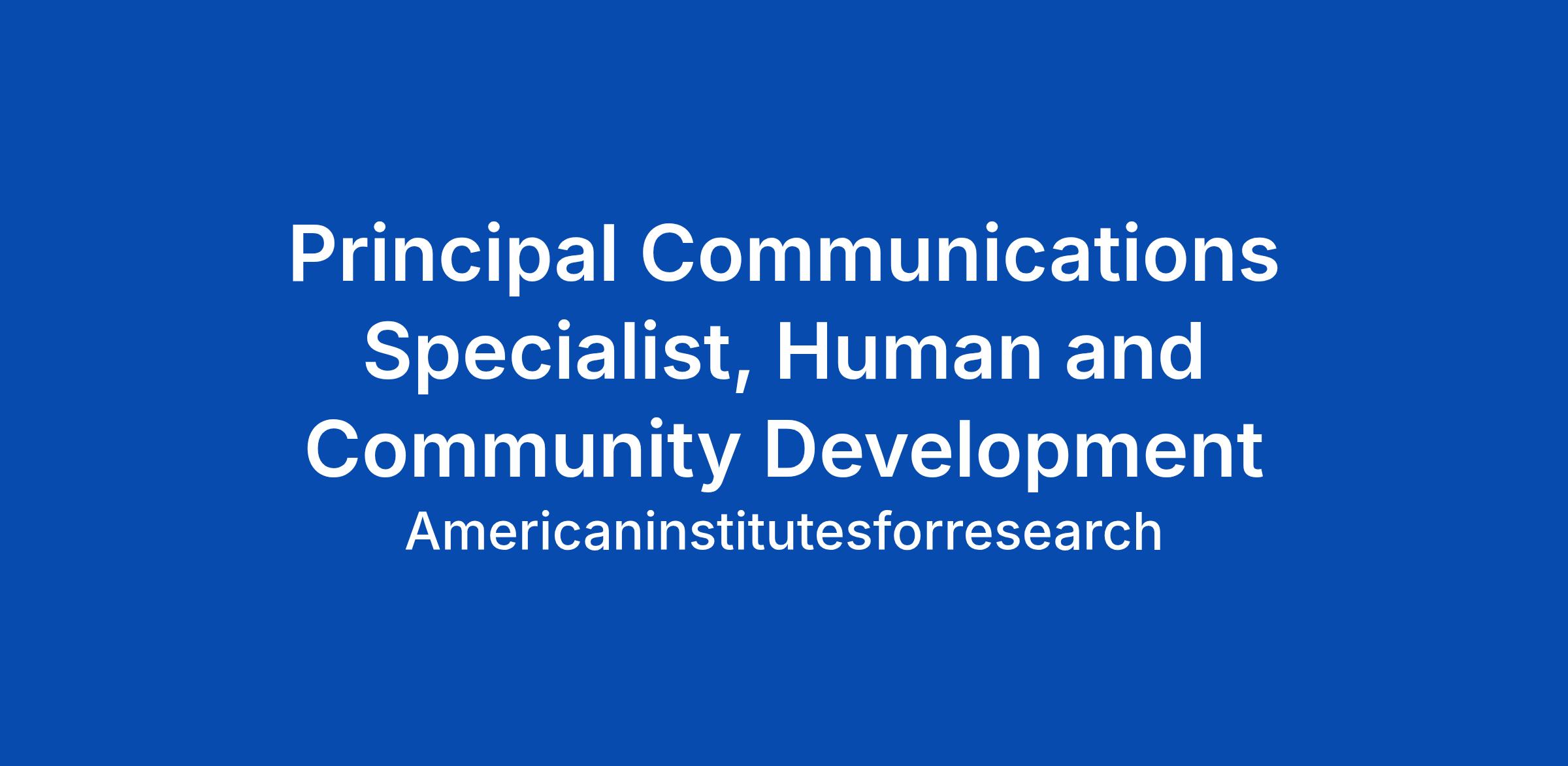 The Principal Communications Specialist will join AIRβs Human and Community Development Program, wh... Click Apply to read the full job description.