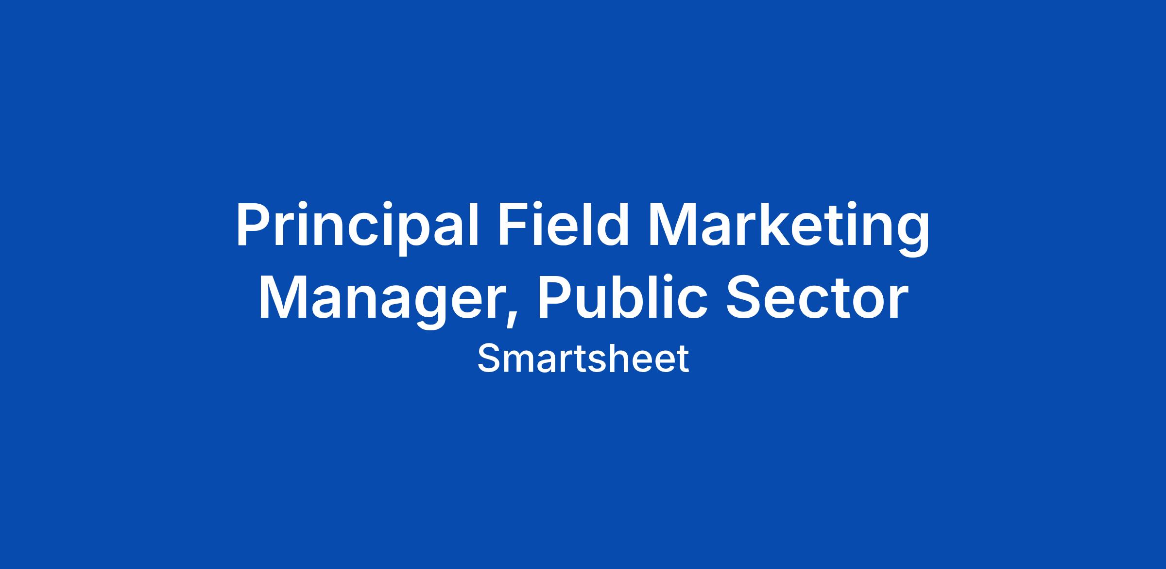 We are seeking a Principal Field Marketing Manager to lead strategy and demand orchestration for our Public Sector market. In this role, you are a strategic partner to Public Sector sales leadership and a key architect of Smartsheet’s field marketing engine within this highly regulated and specialized segment. You are accountable for driving pipeline velocity, defining investment strategy, and establishing the operational rigor required to win in complex government and educational accounts.