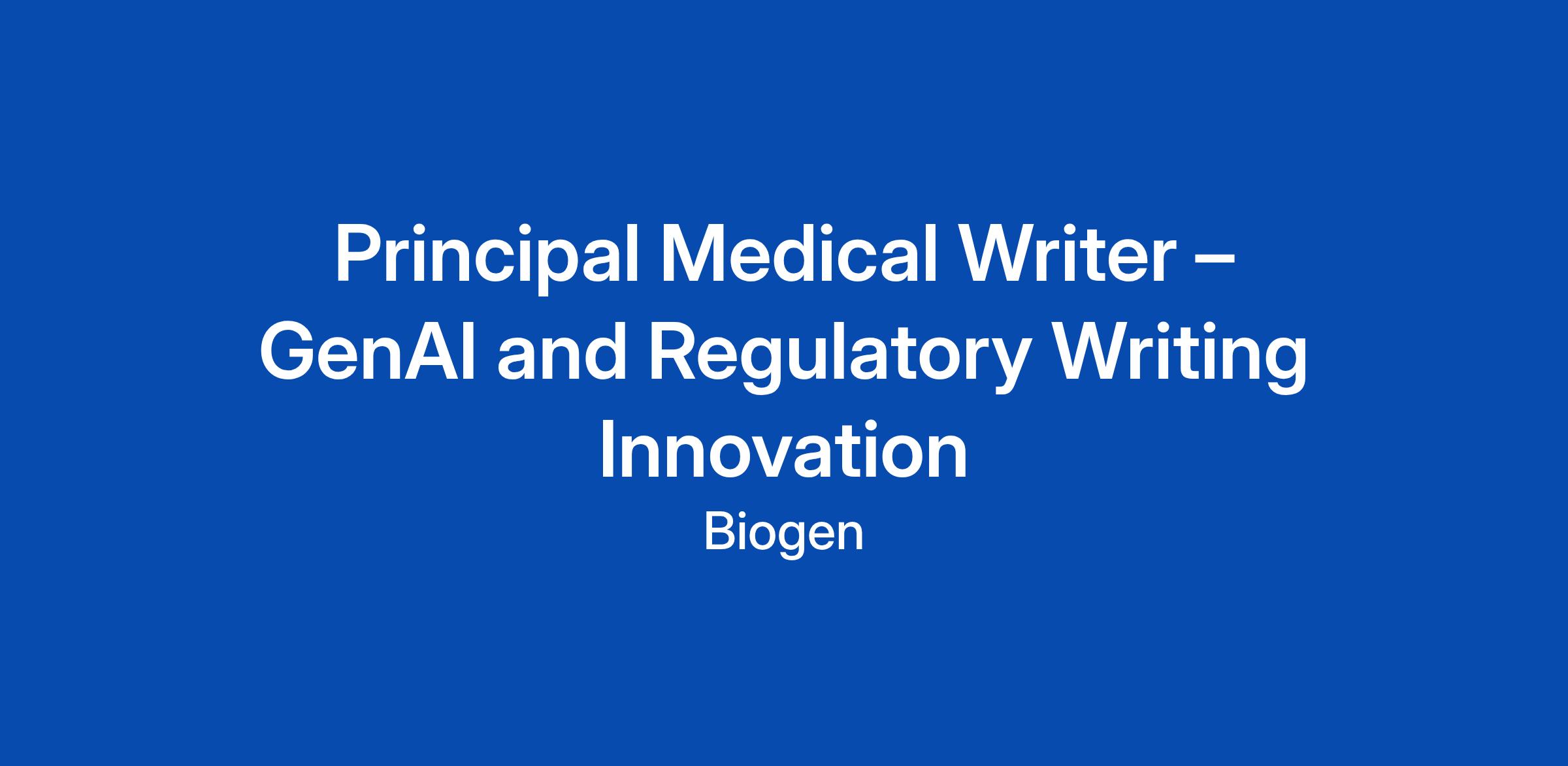 The Principal Medical Writer serves as a scientific communication and innovation leader within Biogen’s Medical Writing department, focusing on leveraging Generative AI (GenAI) technologies to transform regulatory writing. In this role, you will combine your expertise in regulatory document strategy with forward-looking approaches to content generation, automation, and AI-enabled writing support.