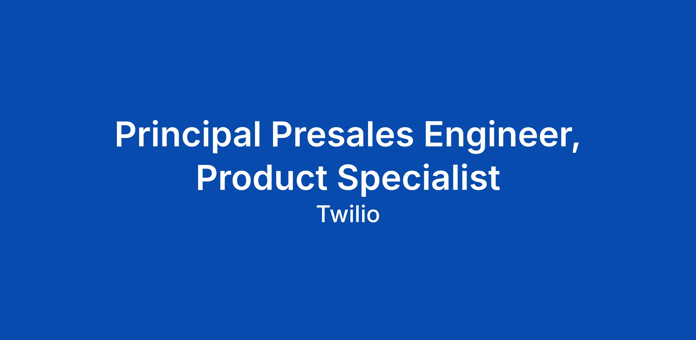 Principal Presales Engineer, Product Specialist