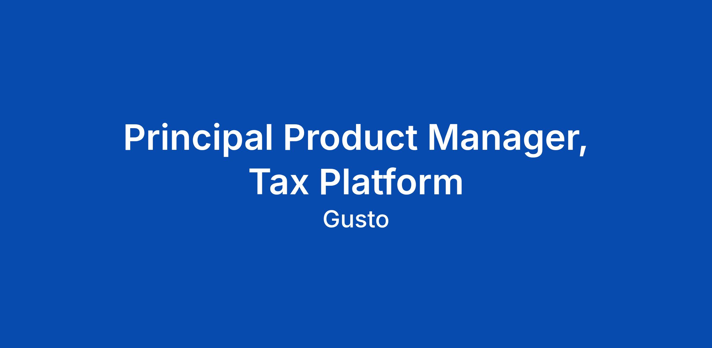 Principal Product Manager, Tax Platform