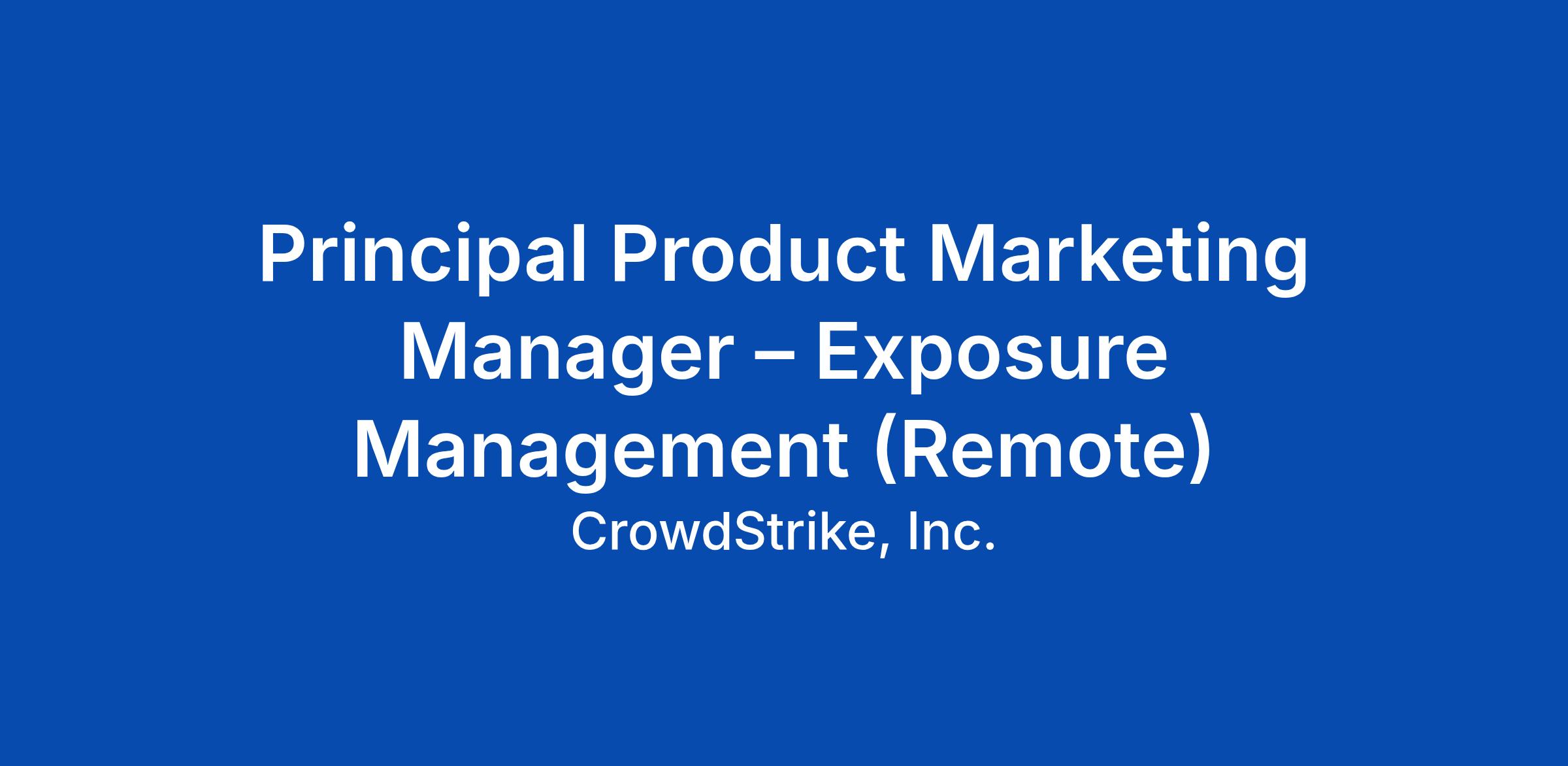 We are seeking a Principal Product Marketing Manager to lead strategy and go-to-market execution for Falcon Exposure Management. This is an individual contributor role responsible for defining category positioning, shaping market perception, and aligning cross-functional teams to accelerate growth in one of CrowdStrike’s most strategic solution areas.