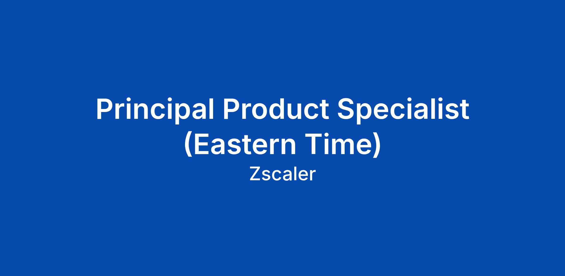 Principal Product Specialist (Eastern Time)