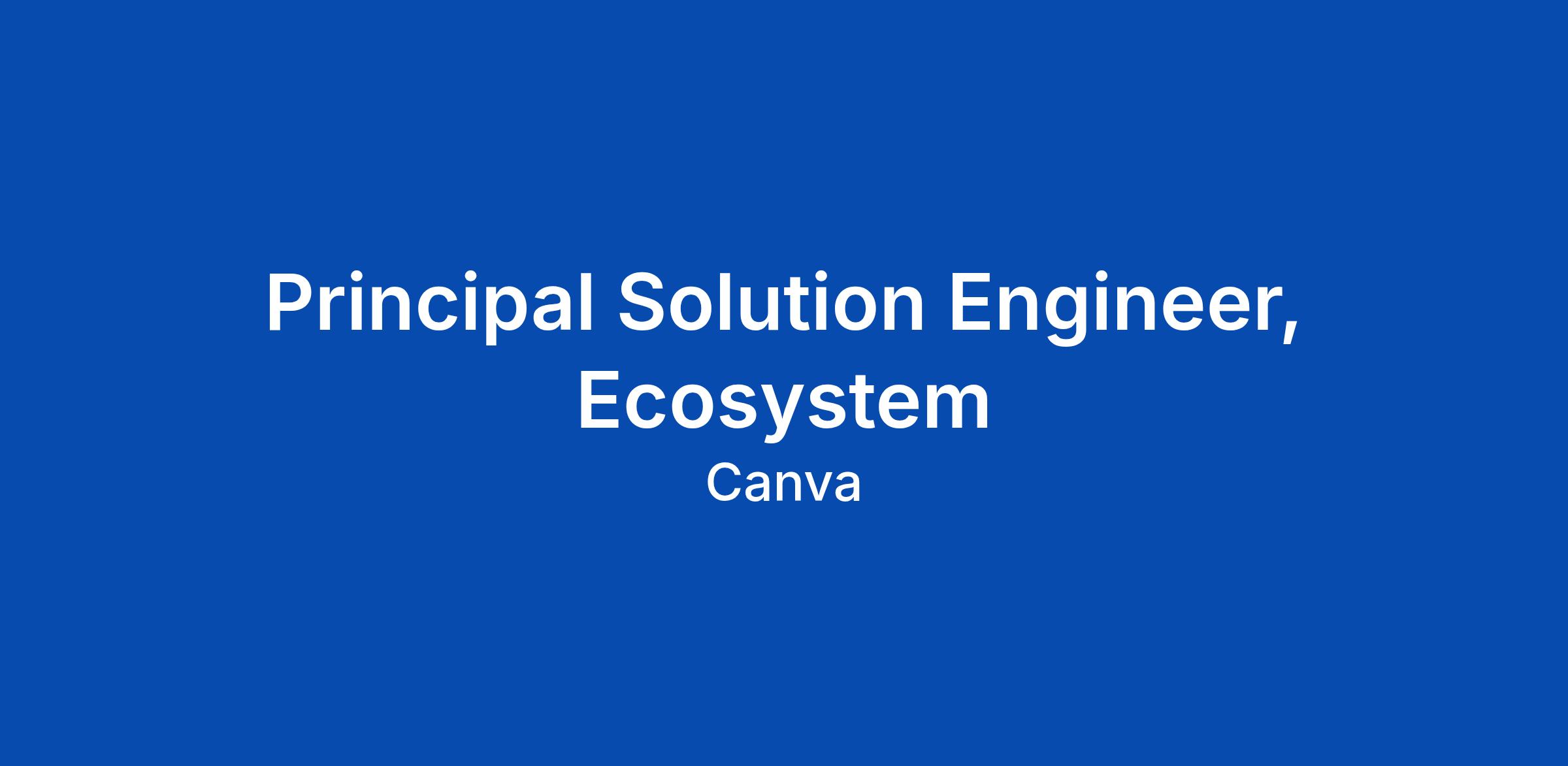 Principal Solution Engineer, Ecosystem