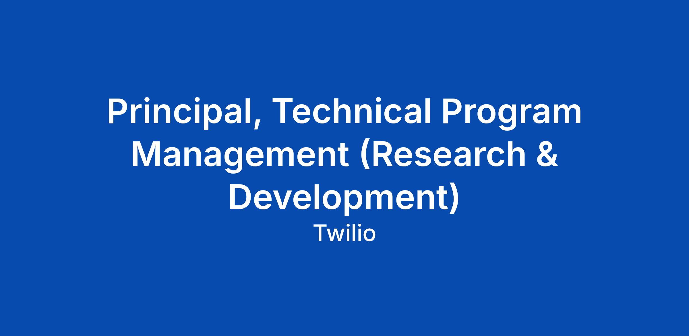 Principal, Technical Program Management (Research & Development)