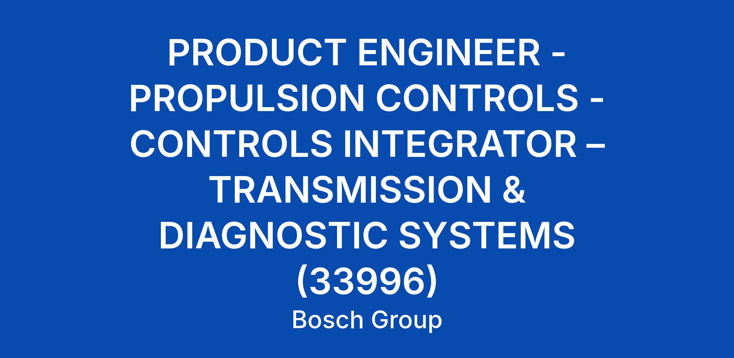 PRODUCT ENGINEER - PROPULSION CONTROLS - CONTROLS INTEGRATOR β TRANSMISSION & DIAGNOSTIC SYSTEMS (33996)