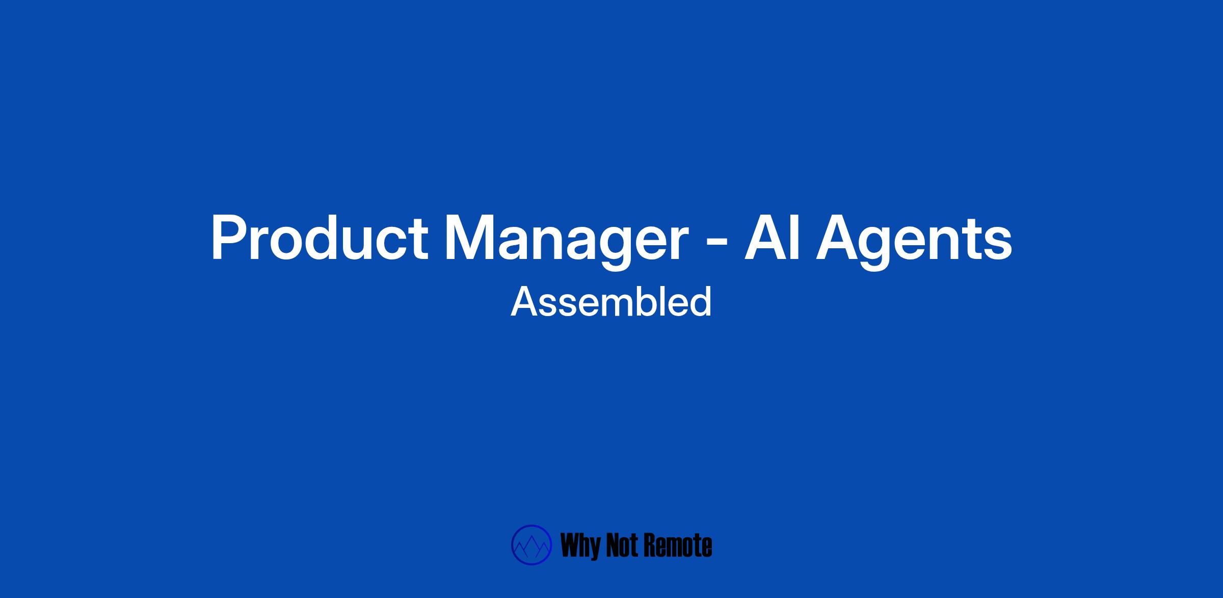We are building products at Assembled that our customers absolutely love that are helping a ton of real people around the globe get better customer support. Our AI Agents are solving cases across channels. We are looking for another product manager to join our team and help us continue to delight and grow in this fast- moving and highly competitive AI for Support space.