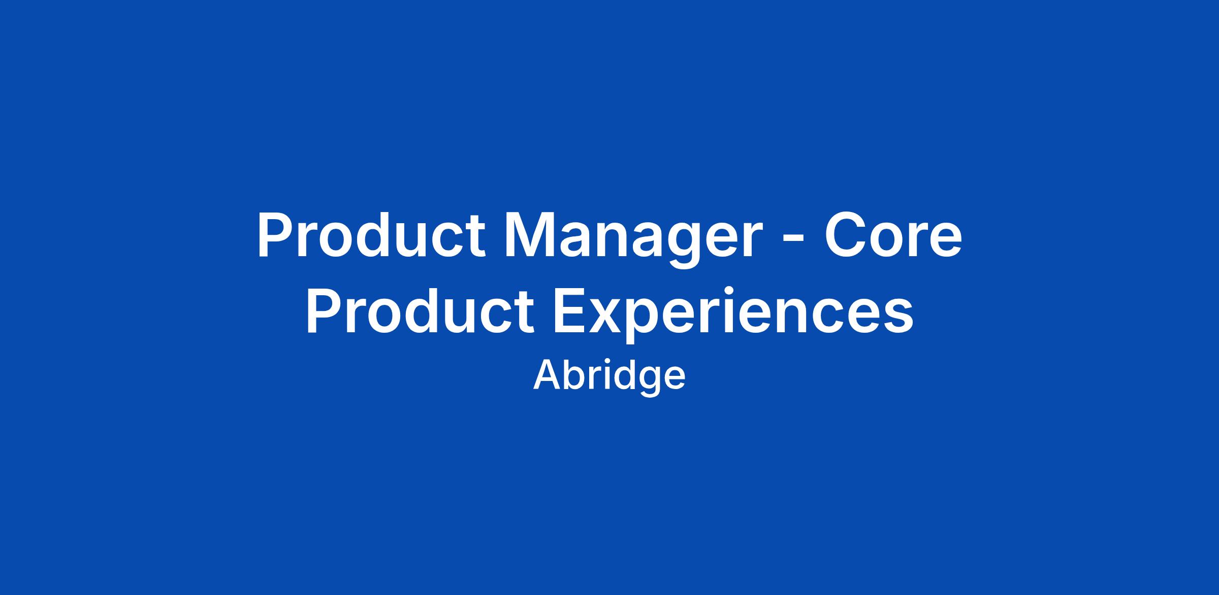Product Manager - Core Product Experiences
