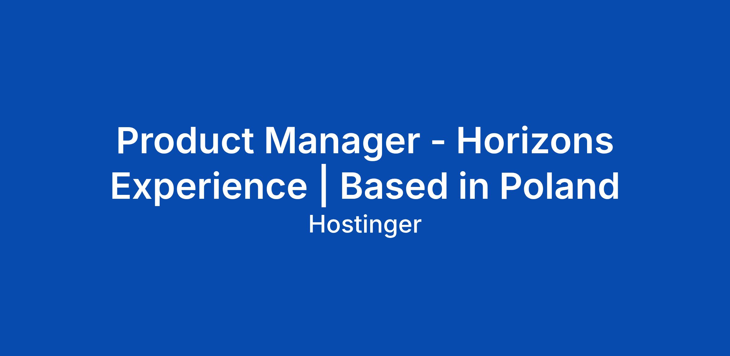 Product Manager - Horizons Experience | Based in Poland