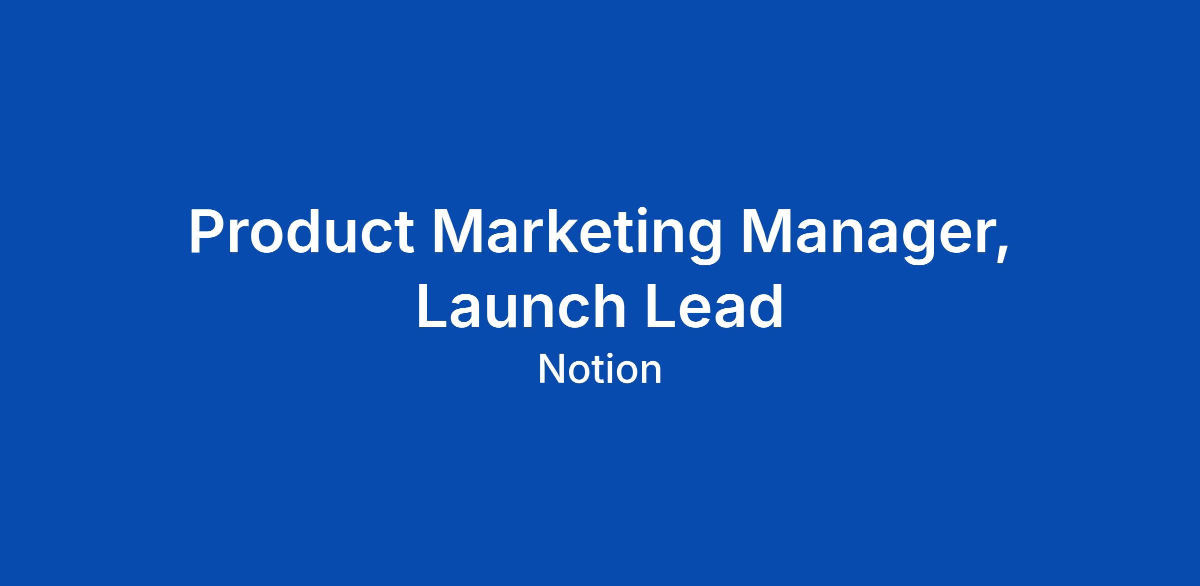 ABOUT US: Notion helps you build beautiful tools for your life’s work. In today's world of endless apps and tabs, Notion provides one place for teams to get everything done, seamlessly connecting docs, notes, projects, calendar, and email—with AI built in to find answers and automate work. Millions of users, from individuals to large organizations like Toyota, Figma, and OpenAI, love Notion for its flexibility and choose it because it helps them save time and money. In-person collaboration is essential to Notion's culture. We require all team members to work from our offices on Mondays, Tuesdays and Thursdays, our designated Anchor Days. Certain teams or positions may require additional in-office workdays. ABOUT THE ROLE: We're looking for a Launch Lead to be the driving force behind every Notion product launch — from the biggest platform moments to the steady drumbeat of releases that keep millions of users informed and excited. This is the PMM who makes launches go: you'll own end‑to‑end launch operations, design and evolve our launch processes, orchestrate high-stakes launches, and own release marketing including our most important user communications at notion.com/releases http
