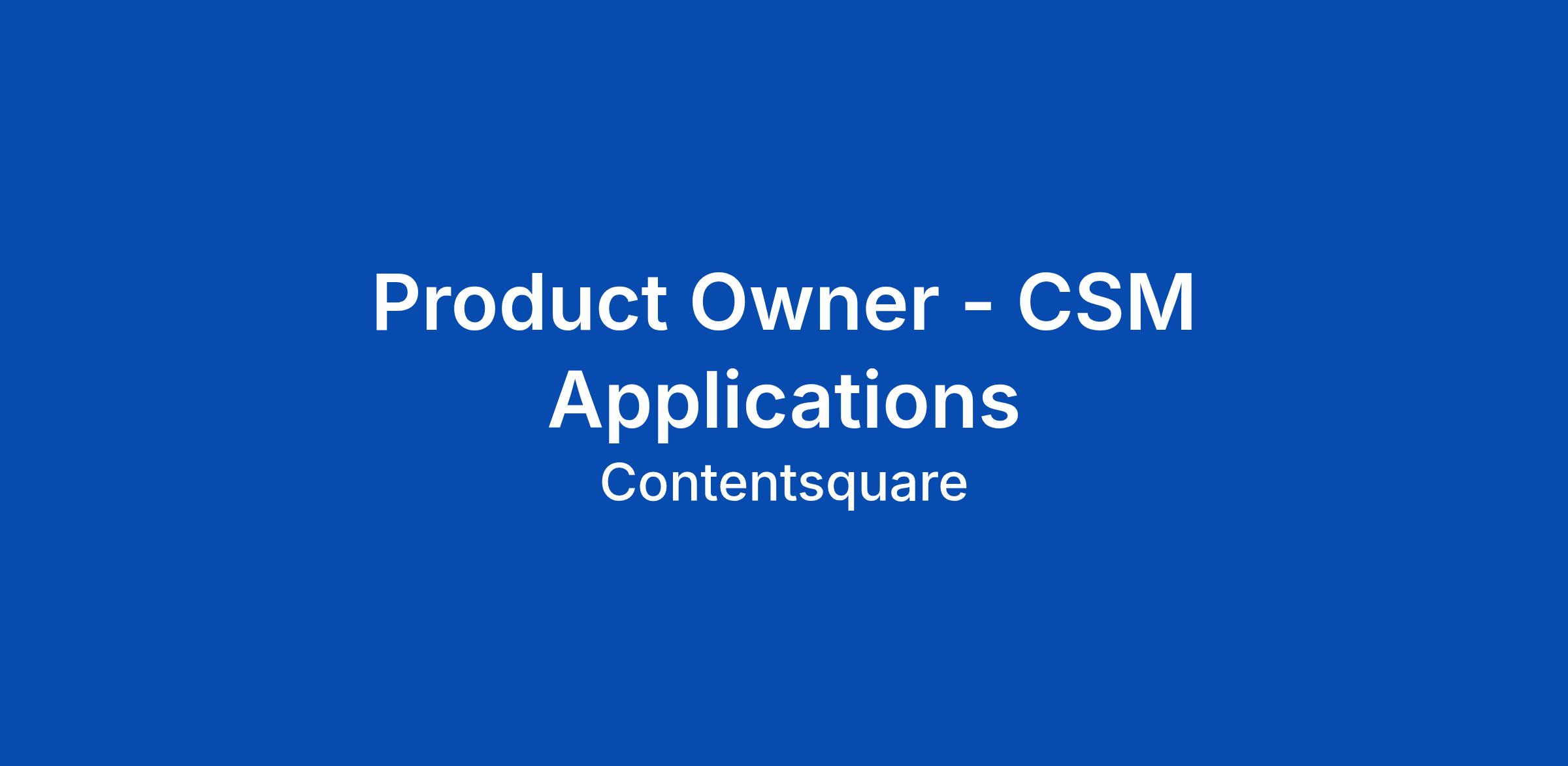 Contentsquare is the all-in-one experience intelligence platform designed to be easily used by anyone who cares about digital journeys. With our flexible and scalable platform, organizations quickly get a deep understanding of their customers’ whole online journey. We are a global leader in the experience analytics space, with a growing presence across 15 offices worldwide. We’re here to stay—and we’re looking for team members who are excited to drive impact and help us scale even further. Our aim is to create an inclusive workplace where everyone learns and succeeds. Contentsquare has built a community of individuals who are daring, understanding, and deliberate. We invite you to join us in making the complex simpler—for our customers, their customers, and each other. Important note: Be careful of scammers pretending to be from Contentsquare. We will never ask for money or contact you through random texts. Any communication from our in house Talent Acquisition team will only ever come from our contentsquare.com or @contentsquare-ext.com domain. For more information, visit our careers blog. About the job: The Product Owner for CSM Applications plays a critical role in shaping how C