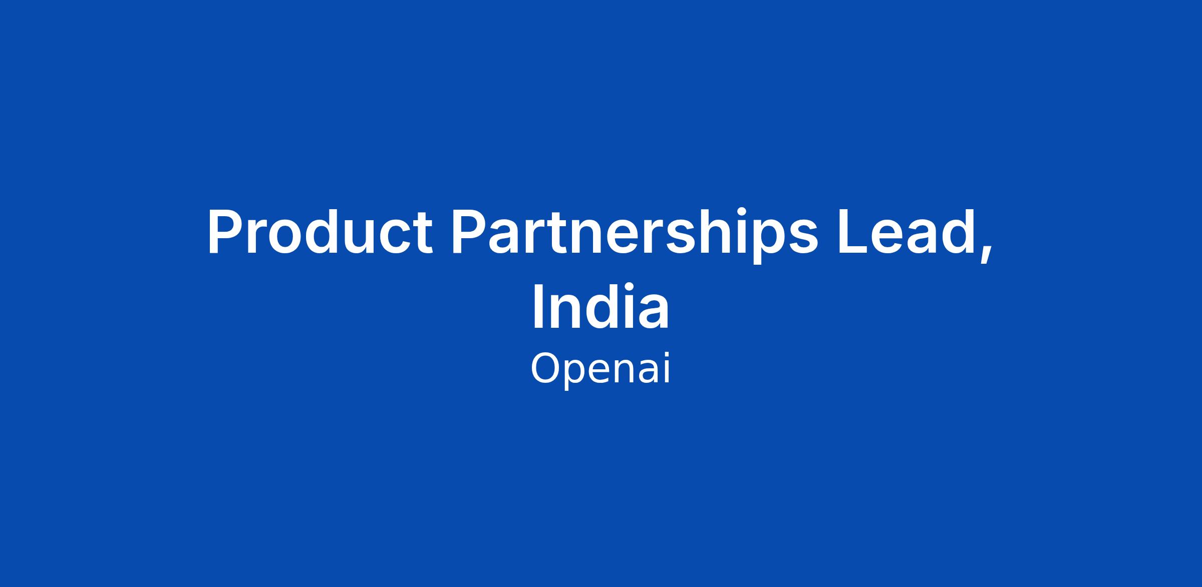 Product Partnerships Lead, India