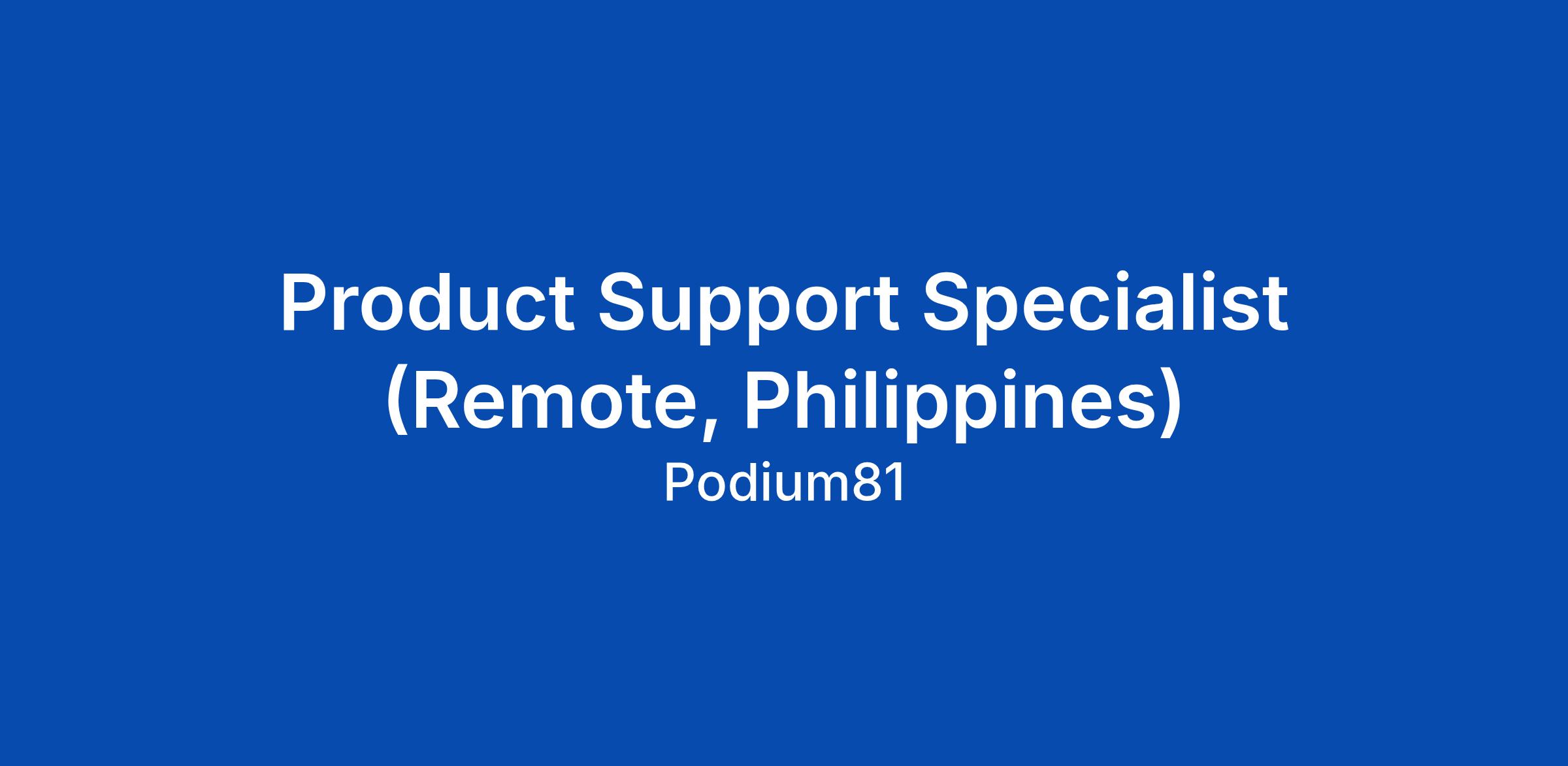 Product Support Specialist (Remote, Philippines)