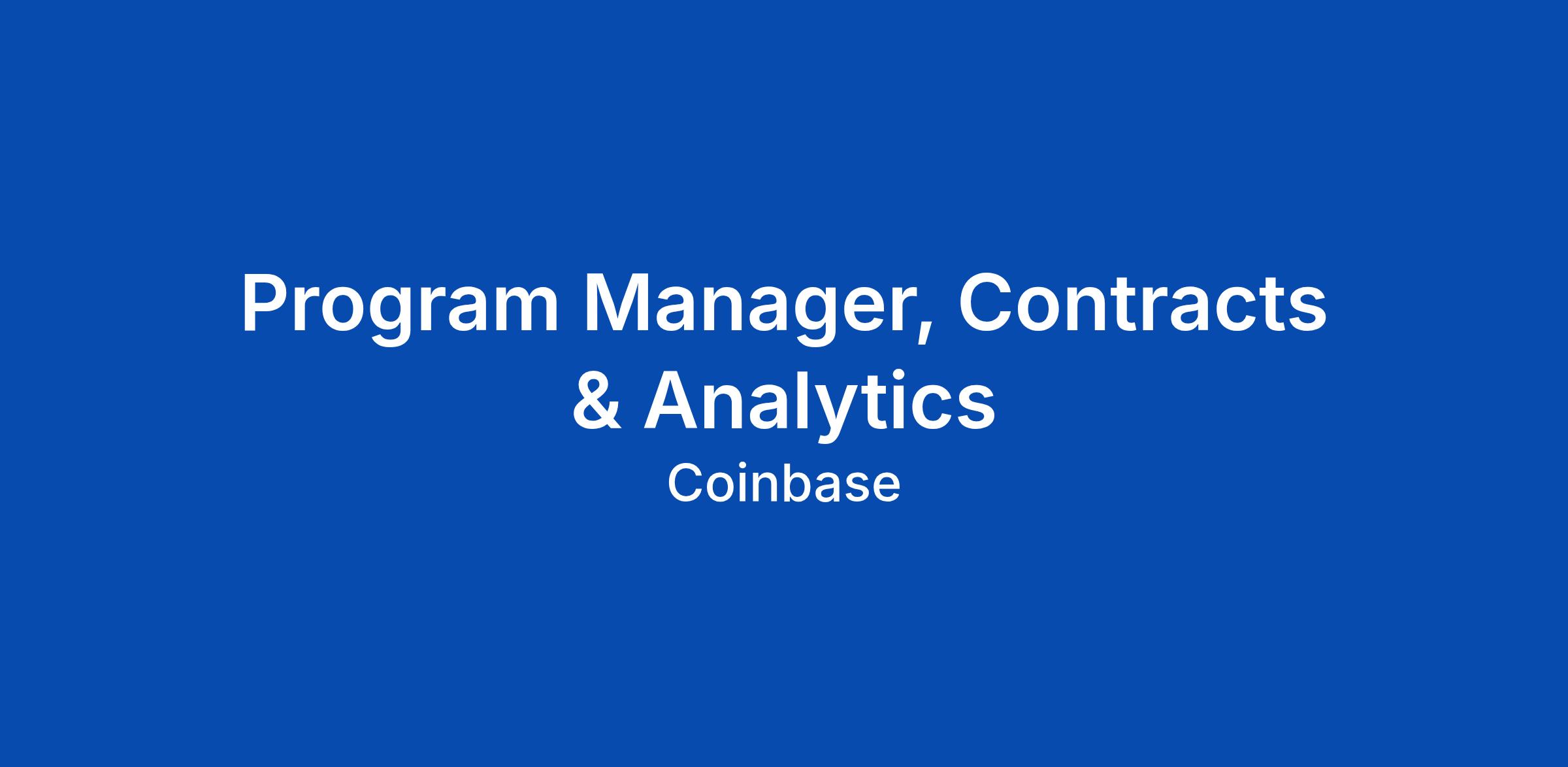 Program Manager, Contracts & Analytics