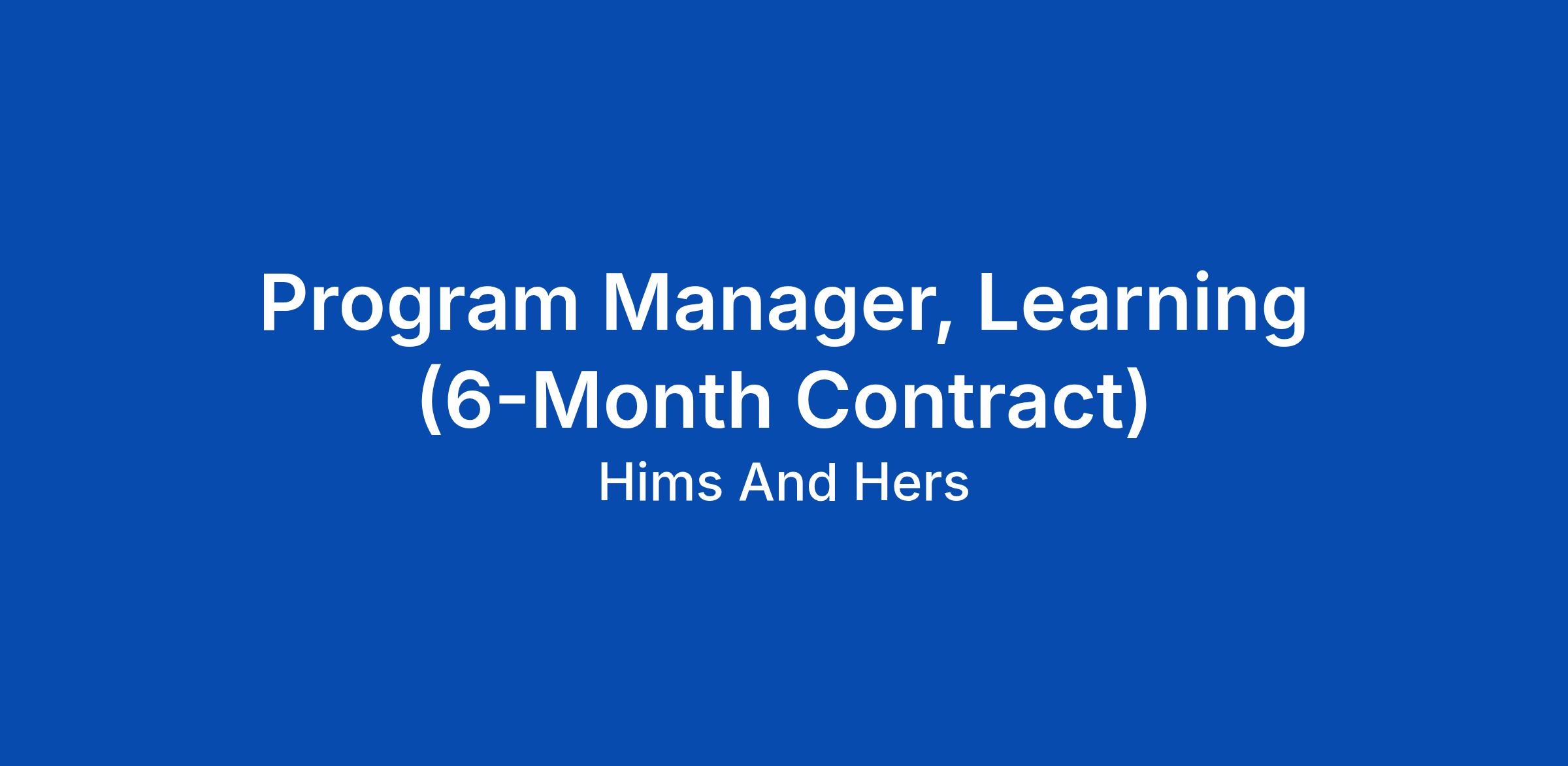 Program Manager, Learning (6-Month Contract)