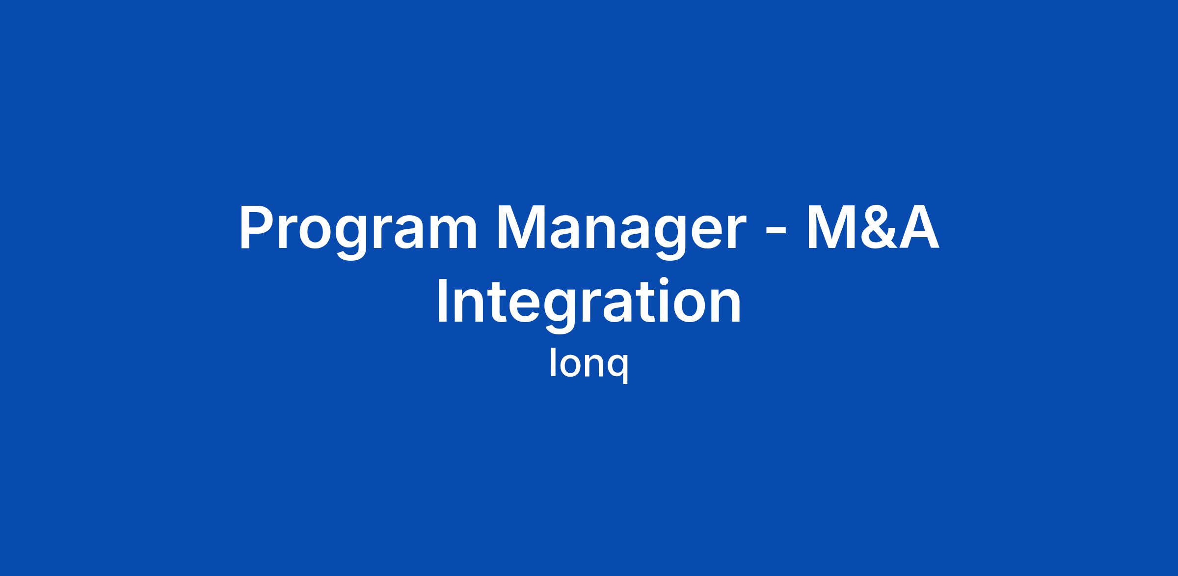 Program Manager - M&A Integration