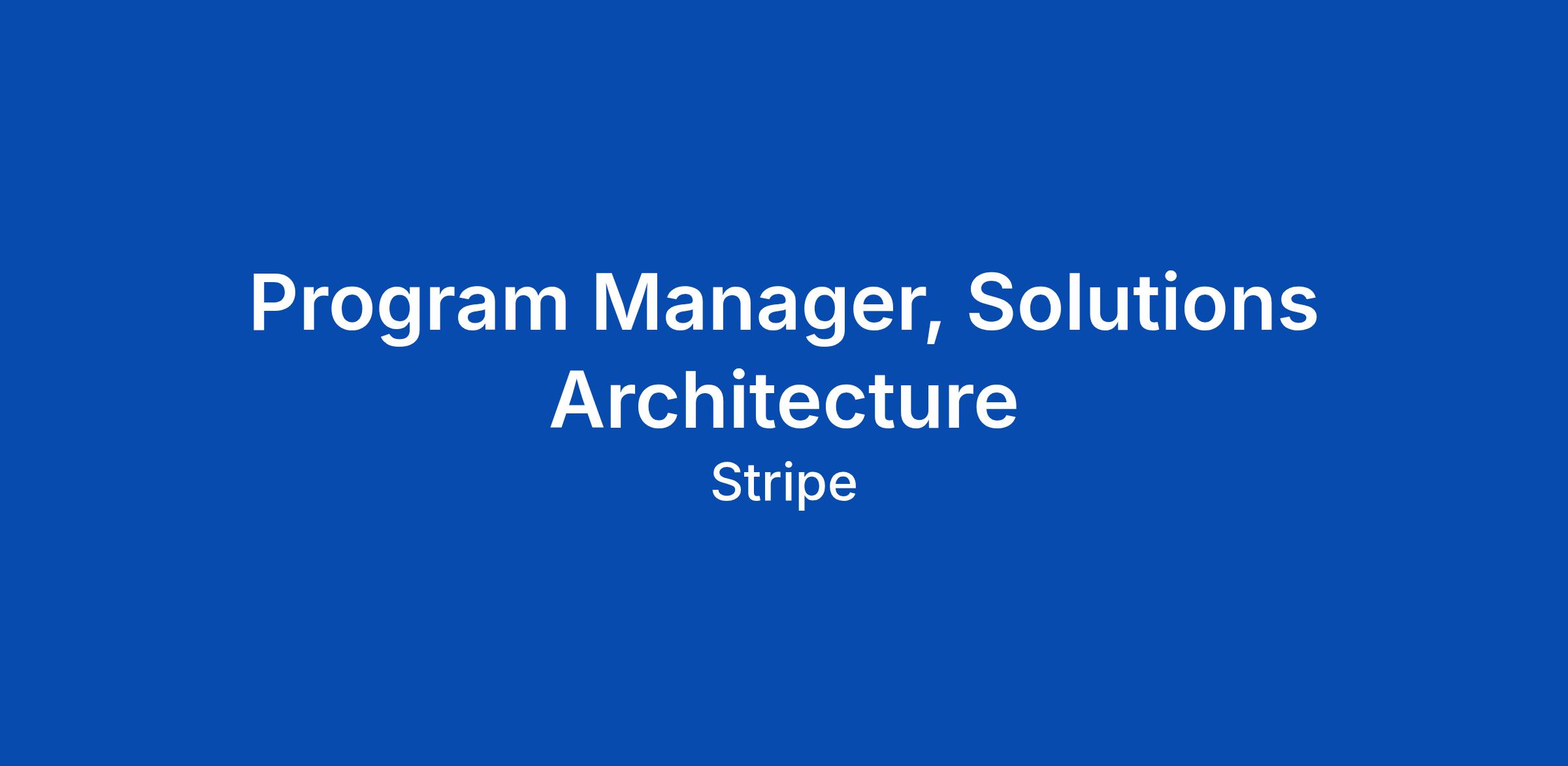 Program Manager, Solutions Architecture