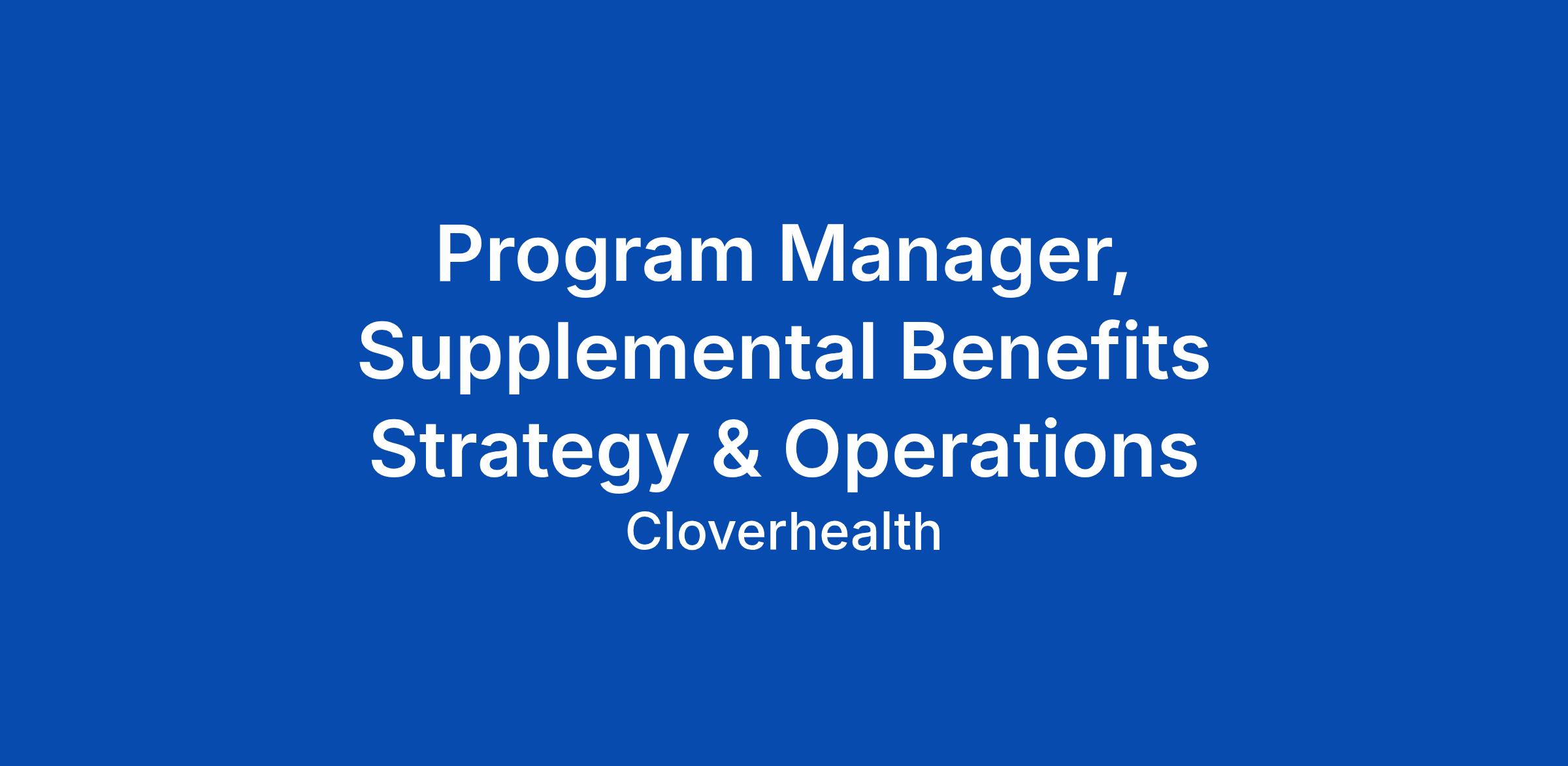 Clover Health is seeking a highly experienced and execution-focused Program Manager to lead vendor management and large-scale implementations across Cloverβs supplemental benefits portfolio, including vision, hearing, fitness, OTC, and LiveHealthy rewards.