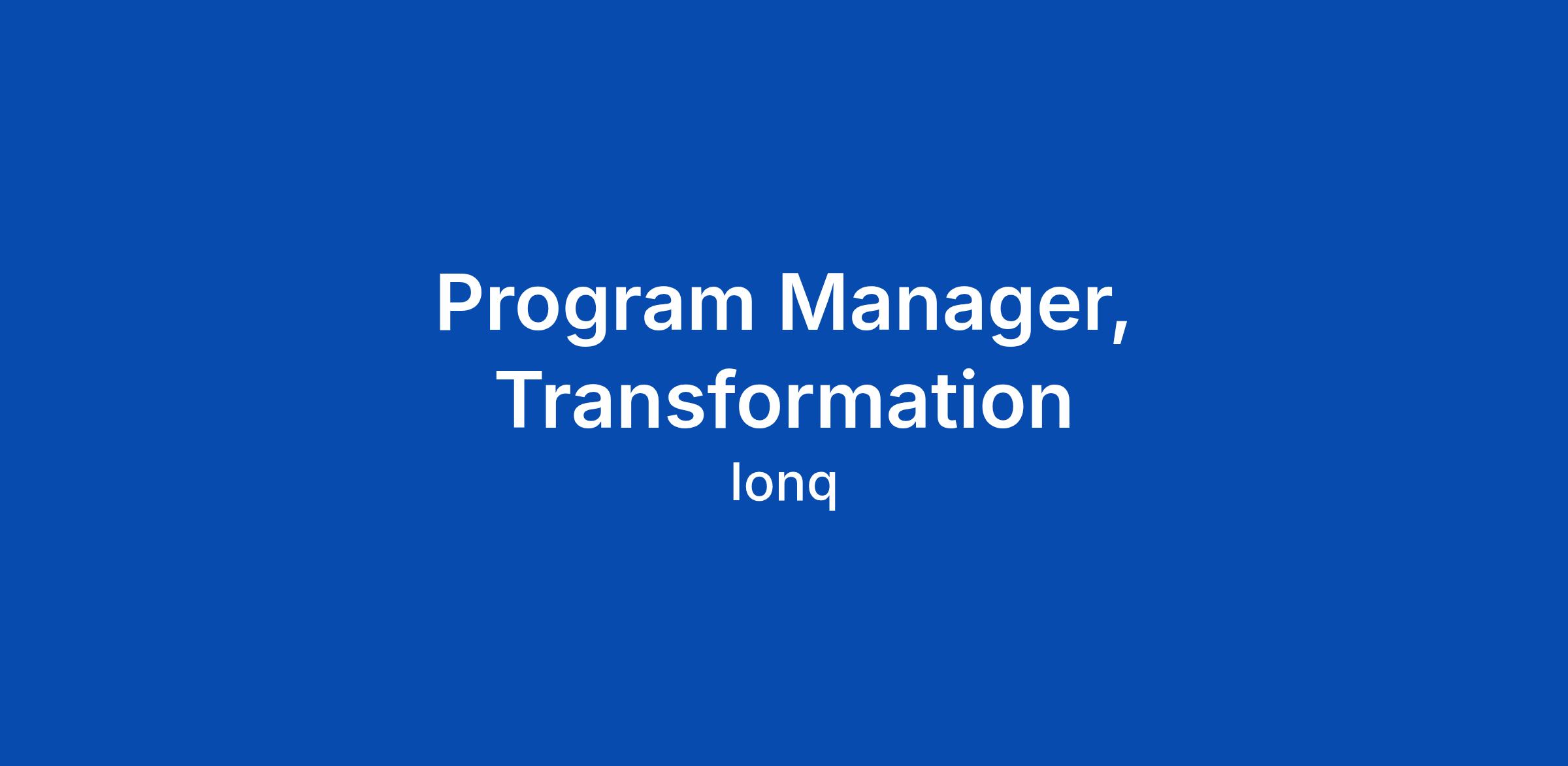 Program Manager, Transformation