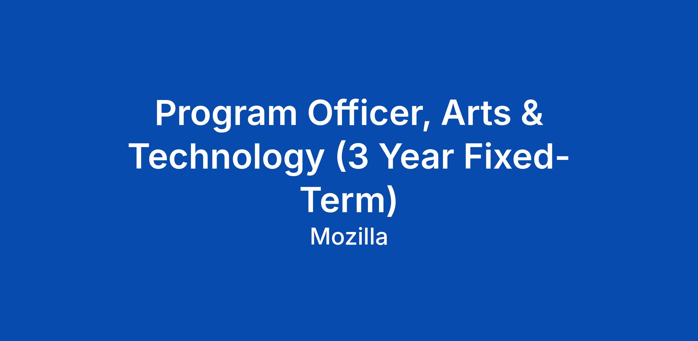 Program Officer, Arts & Technology (3 Year Fixed-Term)