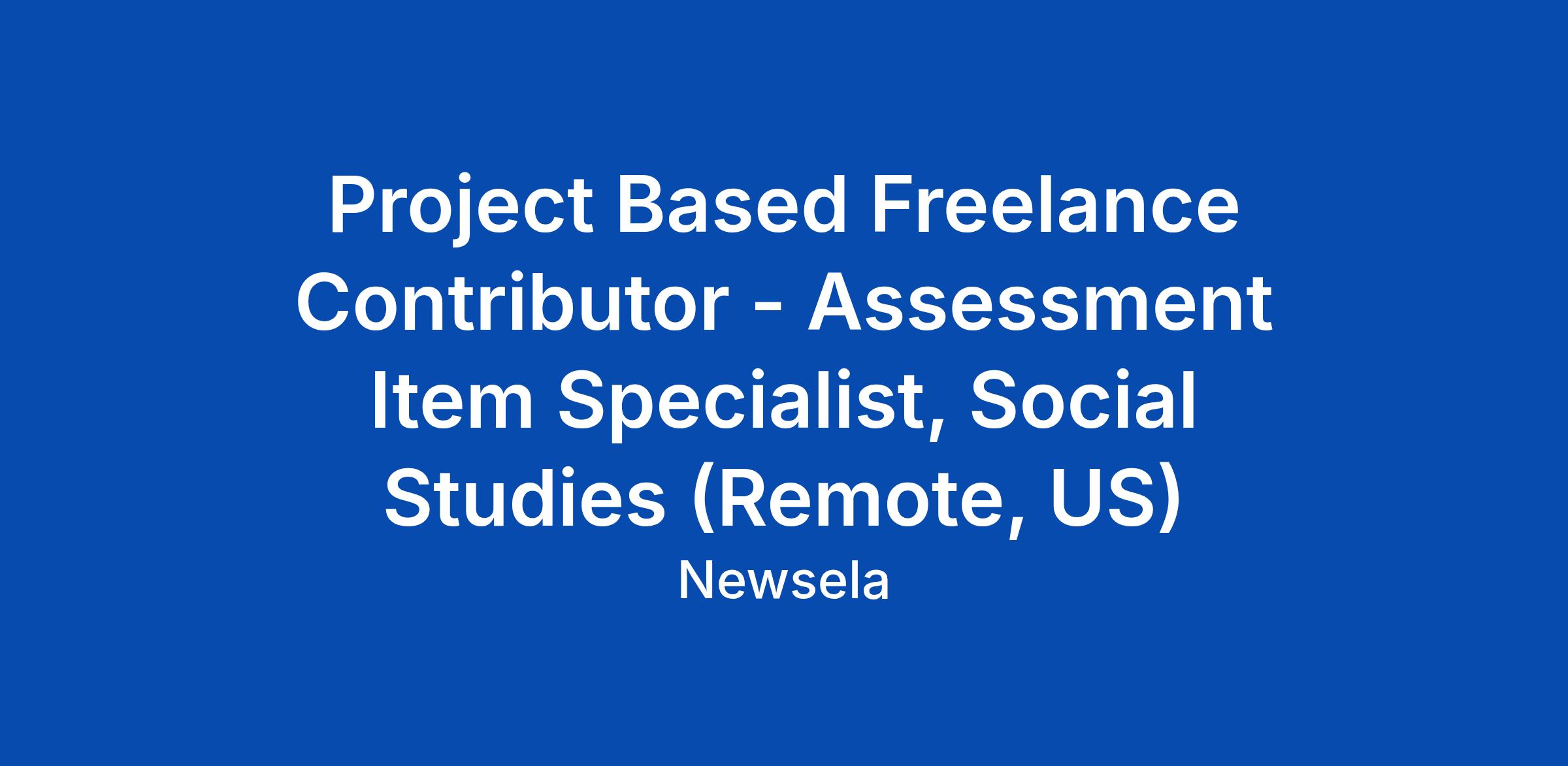 As an Assessment Item Specialist for Social Studies, you will play a key role in expanding the Newsela Item Bank, ensuring students have access to high-quality, inquiry-based assessments. You will leverage your Social Studies expertise to create rigorous, standards-aligned content and evaluate primary and secondary sources that help educators deliver data-informed instruction. This role offers a collaborative, remote environment where your commitment to historical thinking and evidence-based analysis directly supports academic success in classrooms nationwide. You will enjoy the flexibility of a freelance contract while contributing to a platform that is a staple in K-12 digital learning.