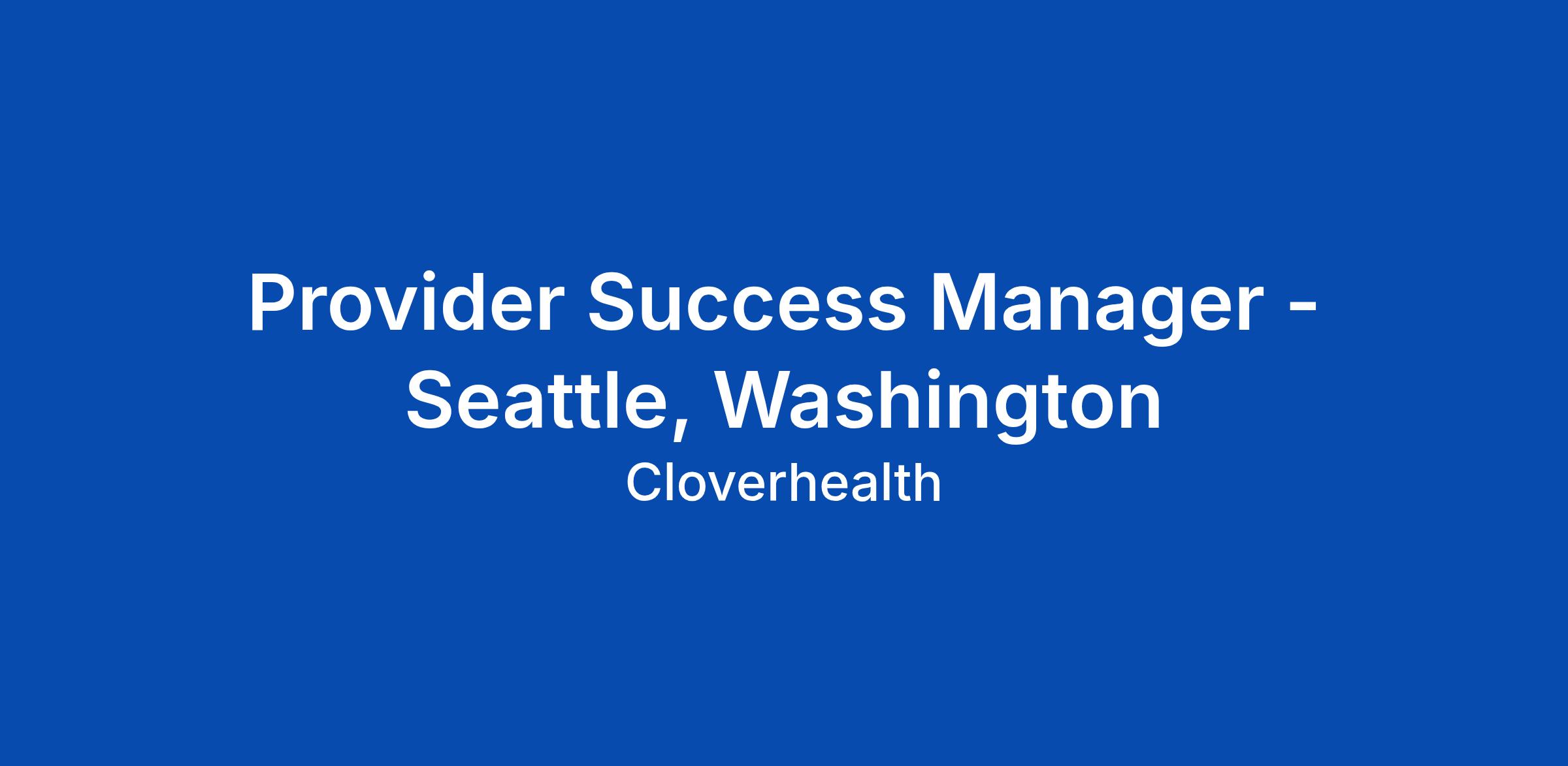 Provider Success Manager - Seattle, Washington