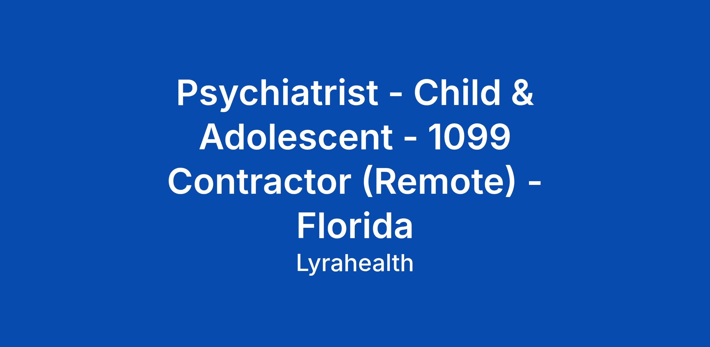 Psychiatrist - Child & Adolescent - 1099 Contractor (Remote) - Florida