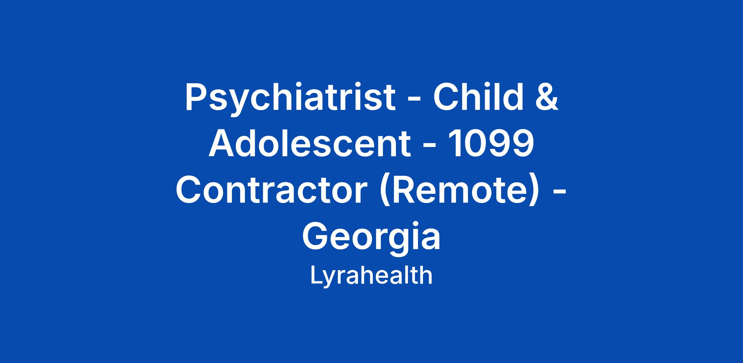 Psychiatrist - Child & Adolescent - 1099 Contractor (Remote) - Georgia