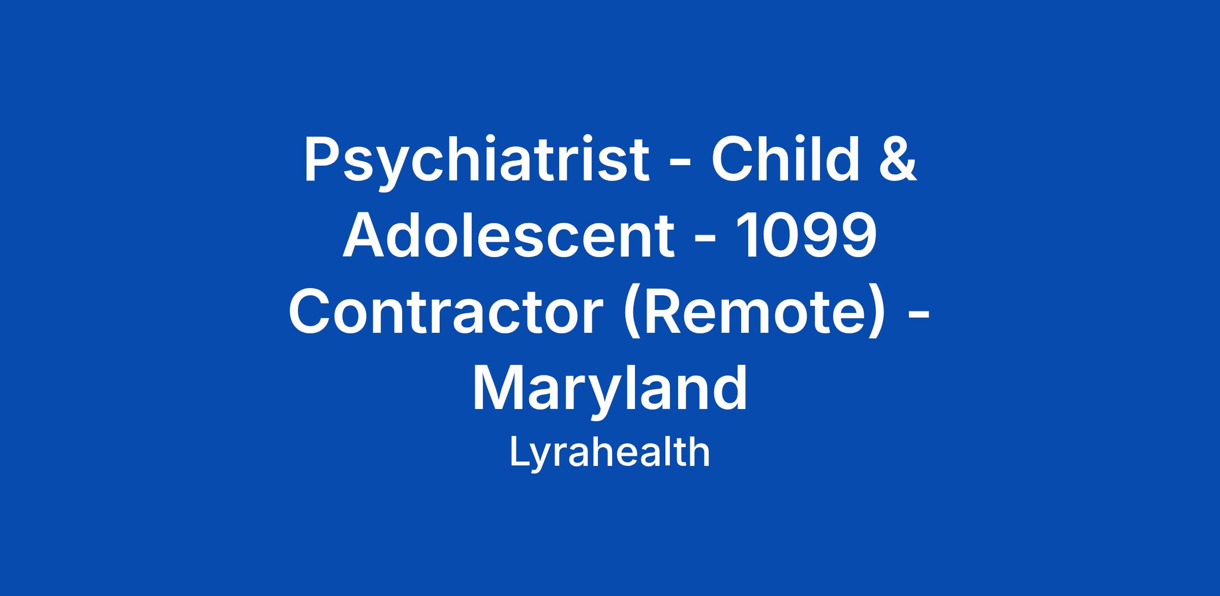 Psychiatrist - Child & Adolescent - 1099 Contractor (Remote) - Maryland