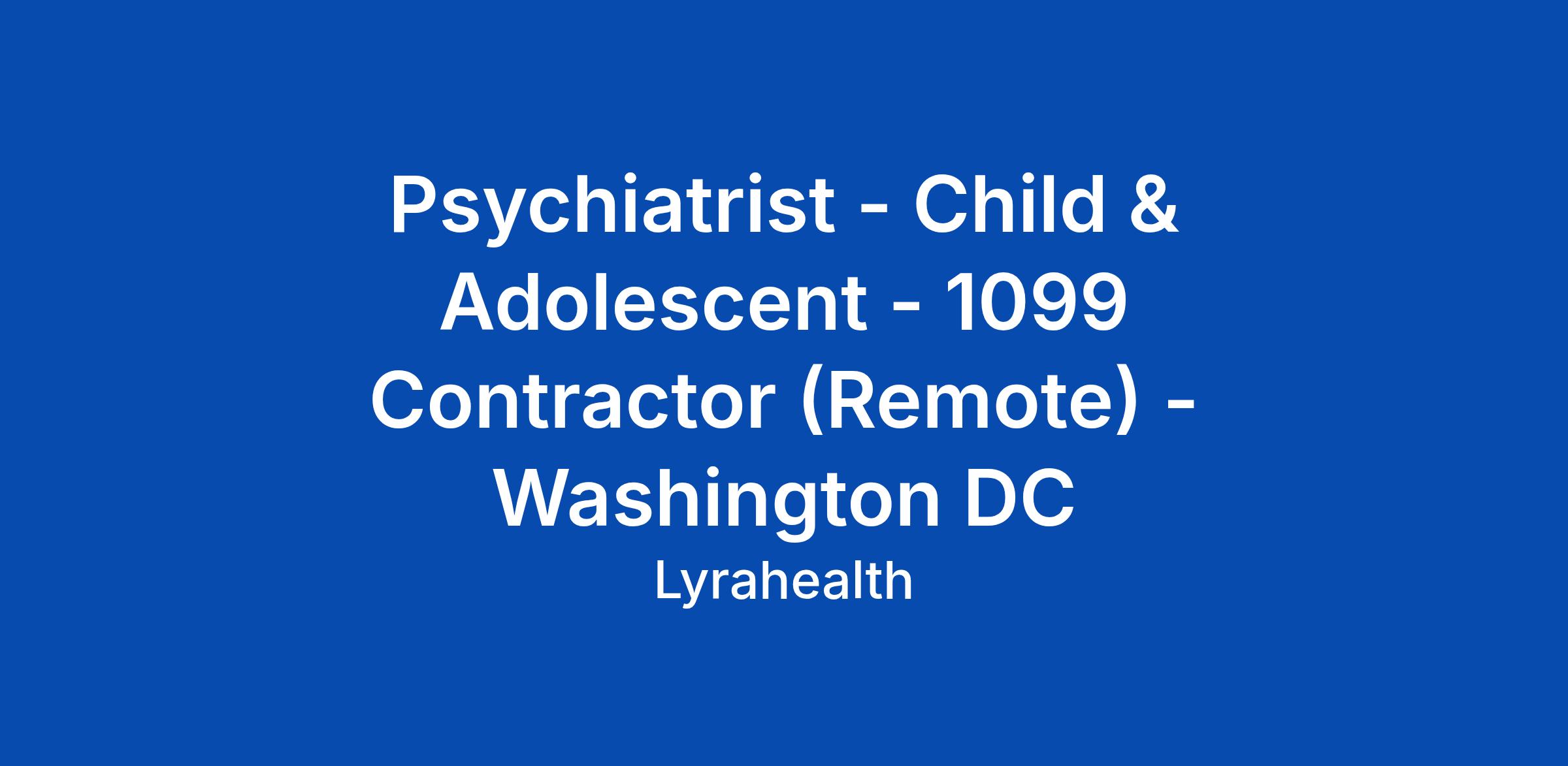 Psychiatrist - Child & Adolescent - 1099 Contractor (Remote) - Washington DC