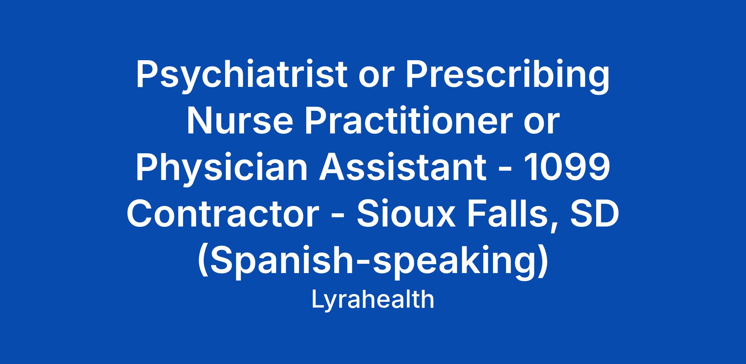 Psychiatrist or Prescribing Nurse Practitioner or Physician Assistant - 1099 Contractor - Sioux Falls, SD (Spanish-speaking)