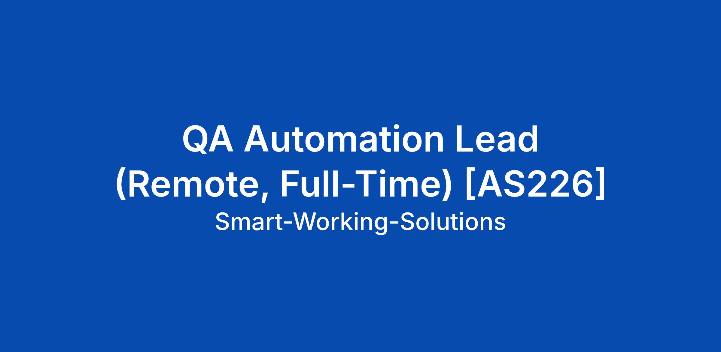 QA Automation Lead (Remote, Full-Time) [AS226]