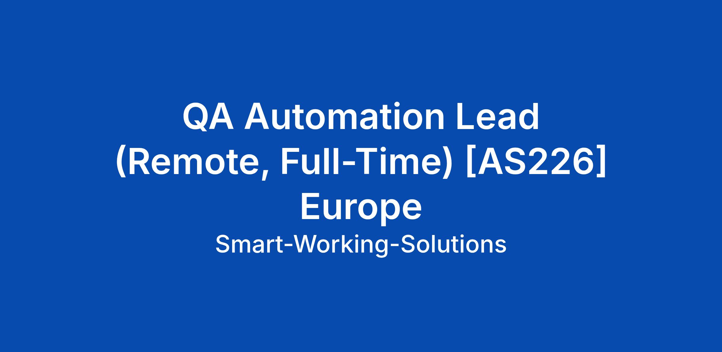 About Smart Working At Smart Working, we believe your job should not only look right on paper but also feel right every day. This isn’t just another remote opportunity - it’s about finding where you truly belong, no matter where you are. From day one, you’re welcomed into a genuine community that values your growth and well-being. Our mission is simple: to break down geographic barriers and connect skilled professionals with outstanding global teams and products for full-time, long-term roles. We help you discover meaningful work with teams that invest in your success, where you’re empowered to grow personally and professionally. Join one of the highest-rated workplaces on Glassdoor and experience what it means to thrive in a truly remote-first world. About the Role We are looking for a QA Automation Lead to drive the evolution of our QA function from a predominantly manual testing model toward a scalable, automation-led, risk-based approach, while maintaining appropriate oversight of existing manual QA processes. This is a hands-on leadership role (approximately 60% hands-on), combining automation strategy, technical execution, and team leadership. You will lead and support a team... Click Apply to read the full job description.