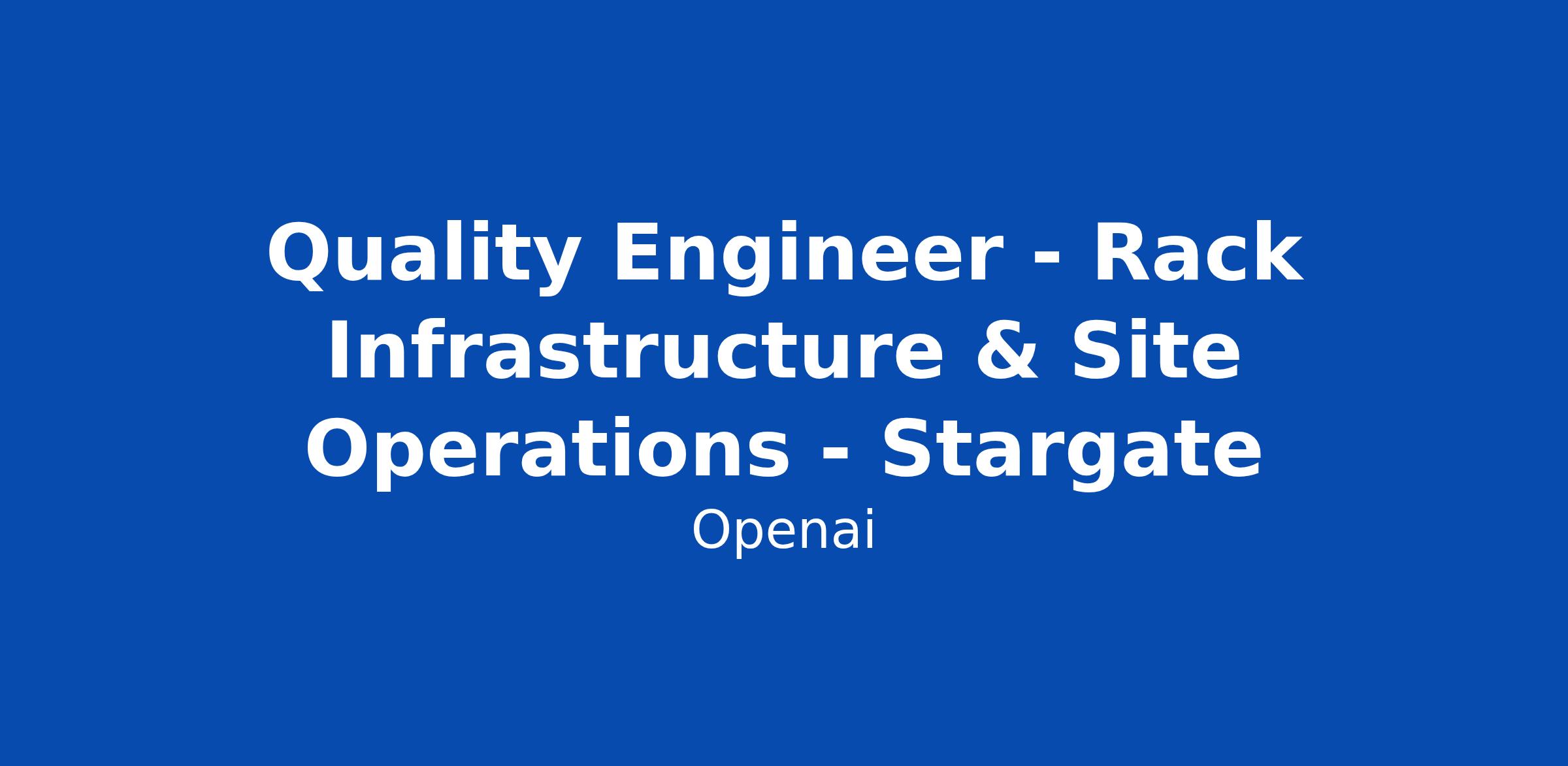 Quality Engineer - Rack Infrastructure & Site Operations - Stargate