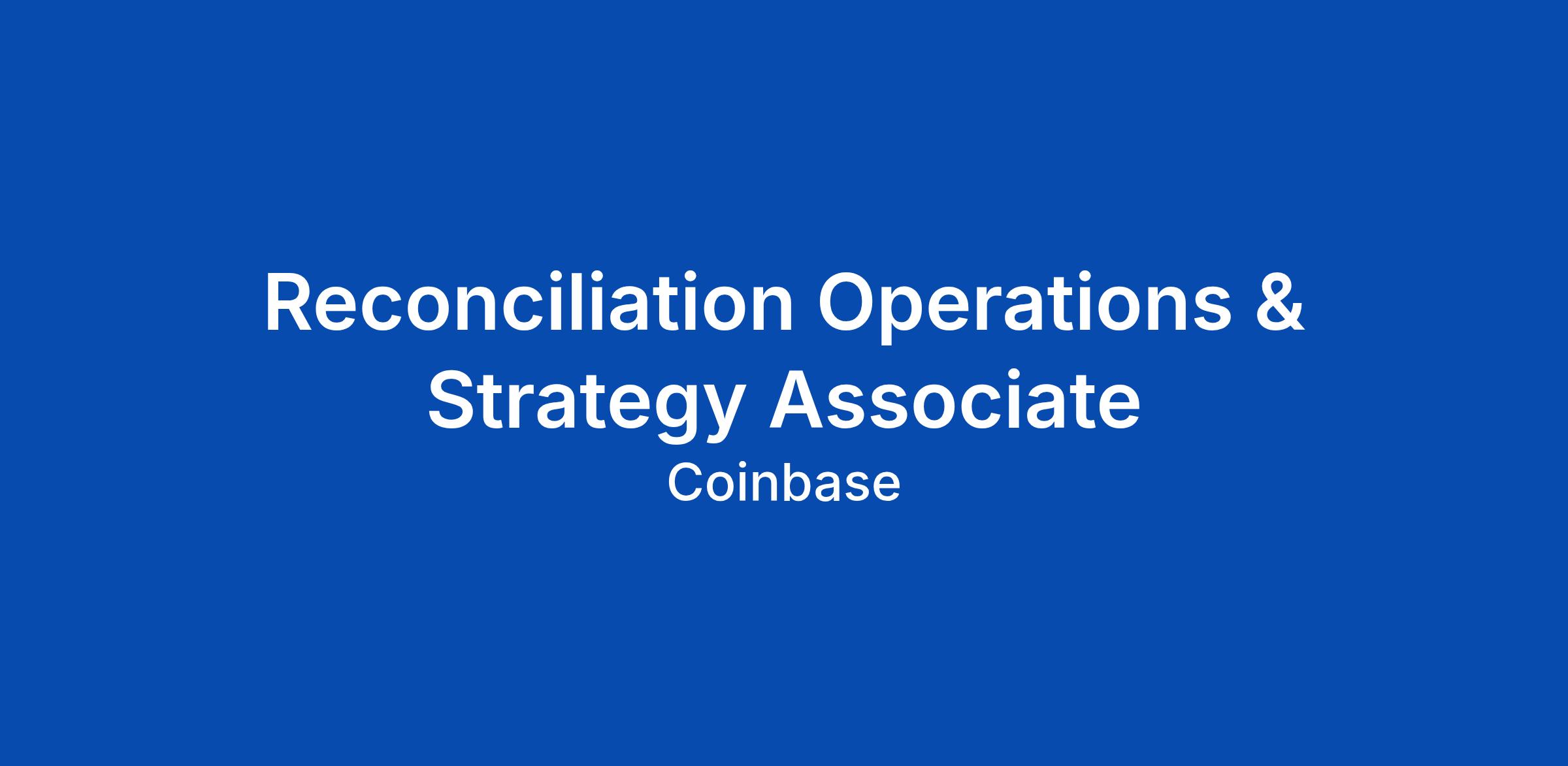 Reconciliation Operations & Strategy Associate