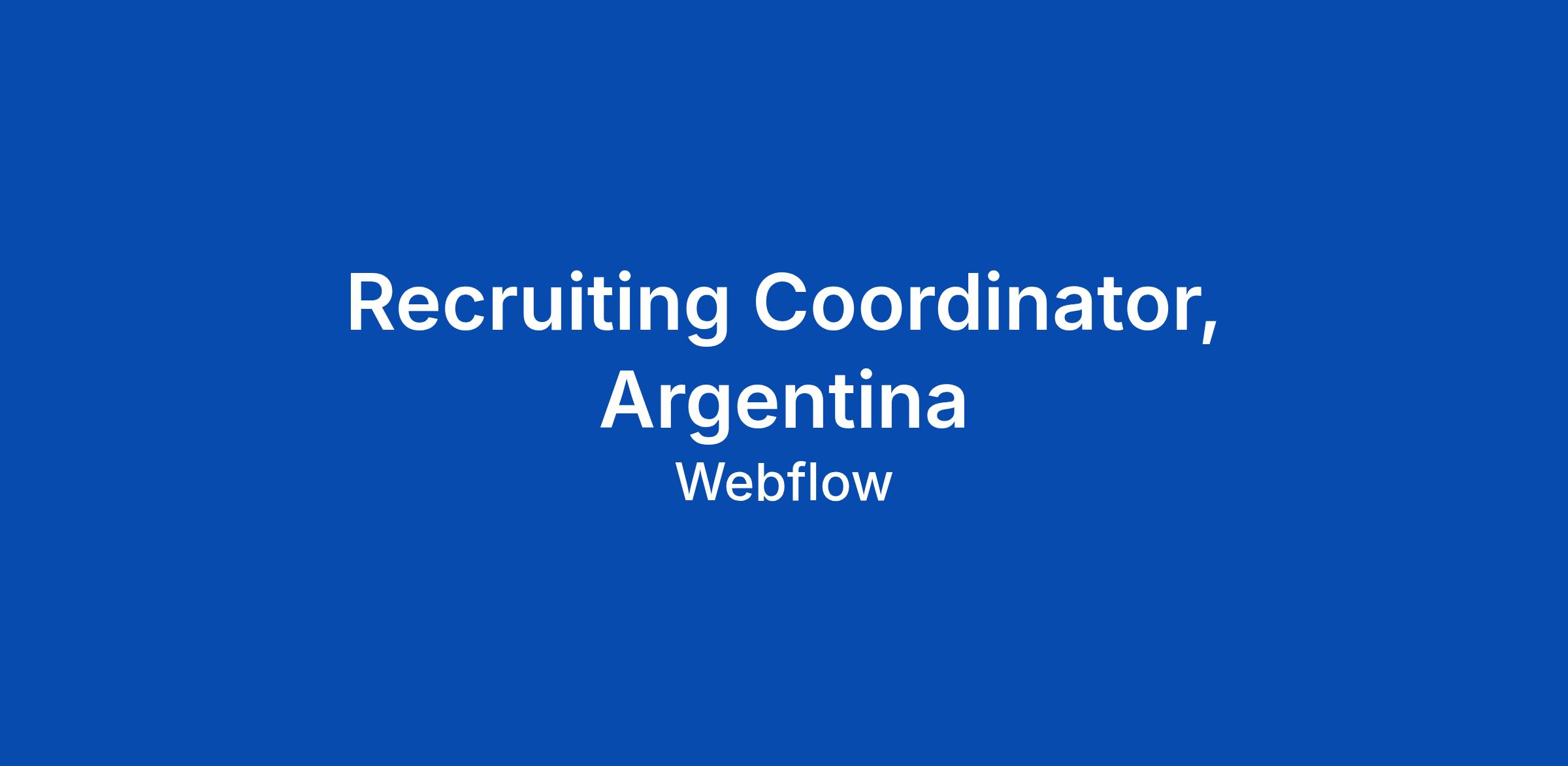 We're looking for our first Recruiting Coordinator in Buenos Aires, Argentina β a foundational hire who will play a hands-on role in building out Webflow's Buenos Aires hub while delivering a best-in-class candidate experience for the engineering and design talent shaping our core product.