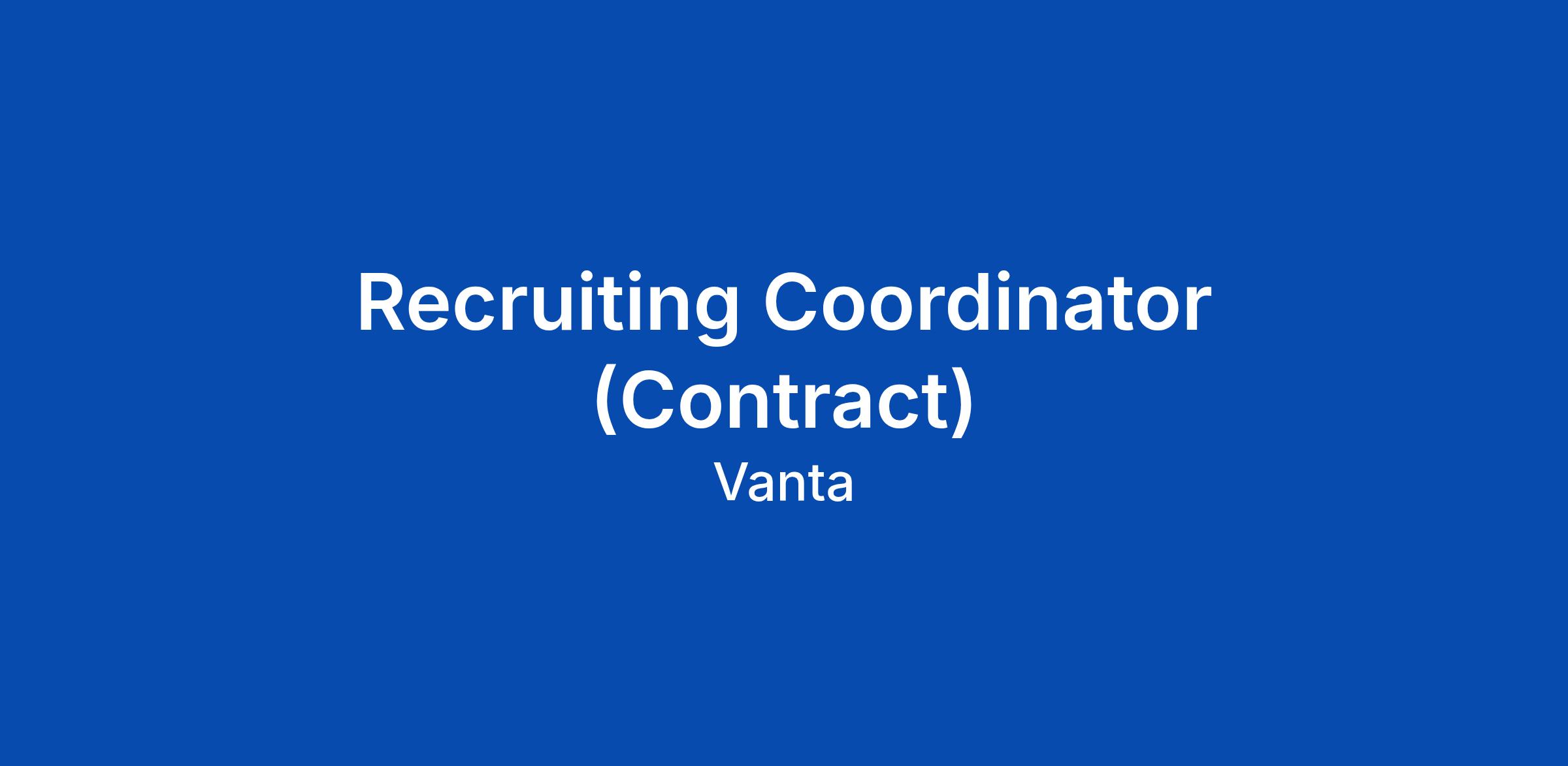 As a Recruiting Coordinator at Vanta, you’ll be a key partner in ensuring smooth, well-run hiring processes during an exciting period of growth. You’ll own interview scheduling, elevate candidate experience, and contribute to projects that strengthen how our recruiting team operates. If this sounds exciting to you, we’d love to hear from you and talk through your path at Vanta!