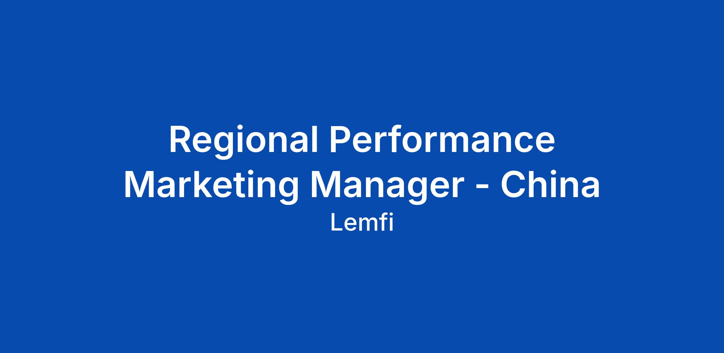 Regional Performance Marketing Manager - China