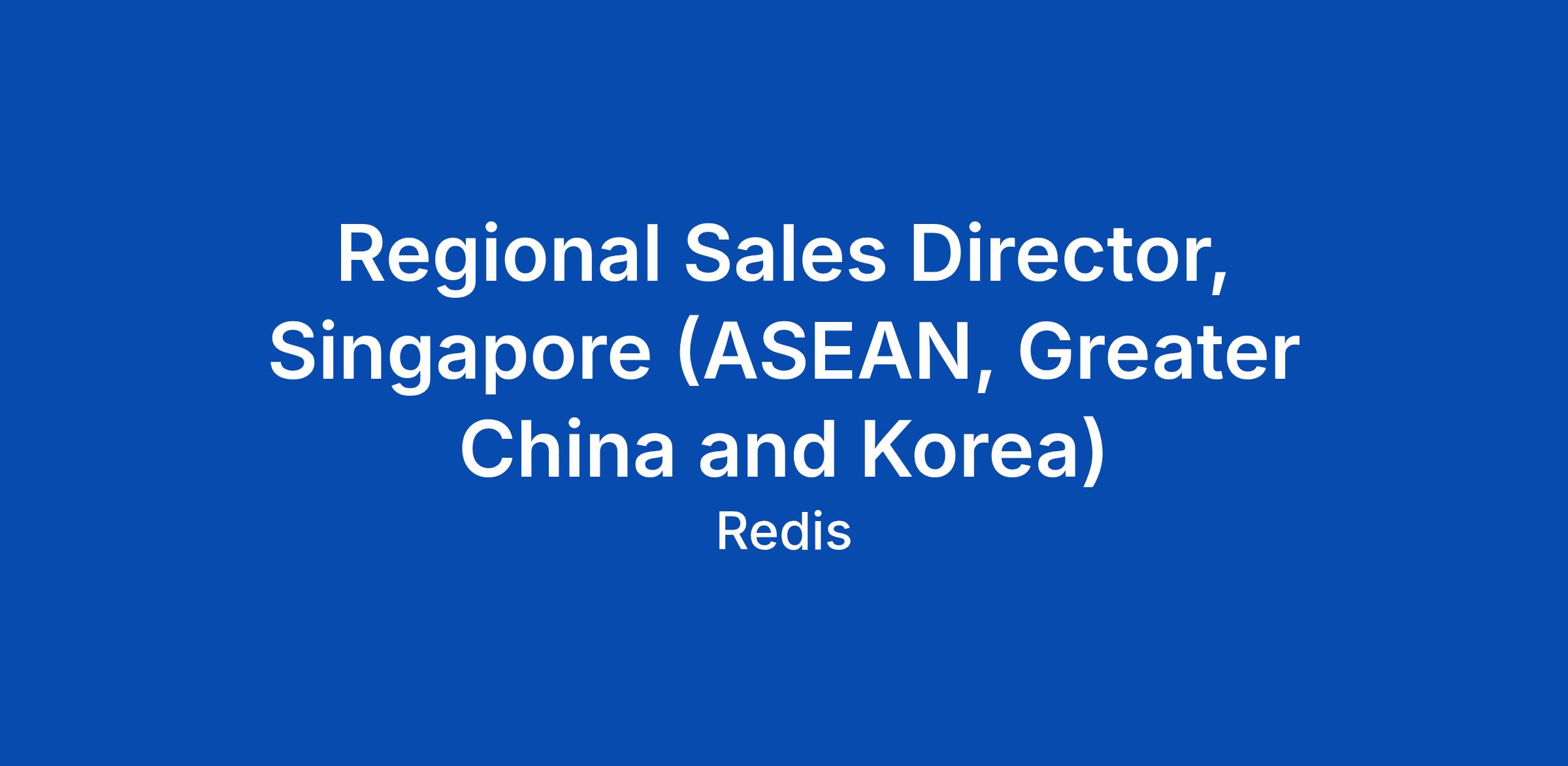 Who we are We're Redis. We built the product that runs the fast apps our world runs on. (If you checked the weather, used your credit card, or looked at your flight status online today, you’re welcome.) At Redis, you’ll work with the fastest, simplest technology in the business—whether you’re building it, telling its story, or selling it to our 10,000+ worldwide customers. We’re creating a faster world with simpler experiences. You in? Regional Sales Director - ASEAN (excluding Indonesia), Greater China and Korea The Regional Sales Director will have leadership responsibility for the sales activities and operations for Redis in the ASEAN (excluding Indonesia), Greater China and Korea. This role will be based in Singapore. The objective of this role is to lead a growing team of sales professionals in the region who are focused on expanding our growing customer base and generating more business from current customers. For this critical position, we are seeking a thoughtful, disciplined and passionate leader who will bring significant experience and credibility to the team. The Ideal candidate will have experience leading a quarterly-focused technology company through a period of succ... Click Apply to read the full job description.