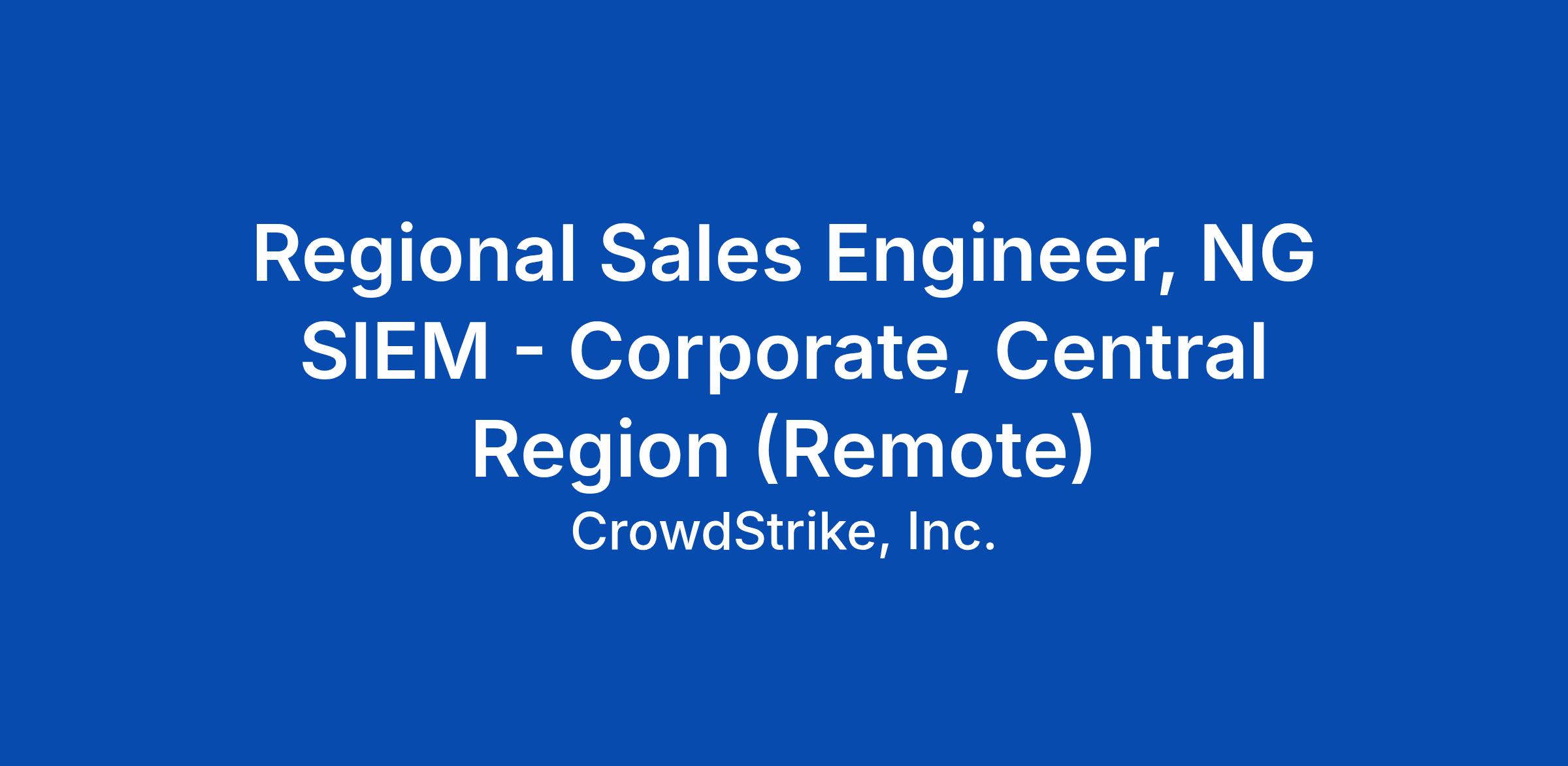 Regional Sales Engineer, NG SIEM - Corporate, Central Region (Remote)