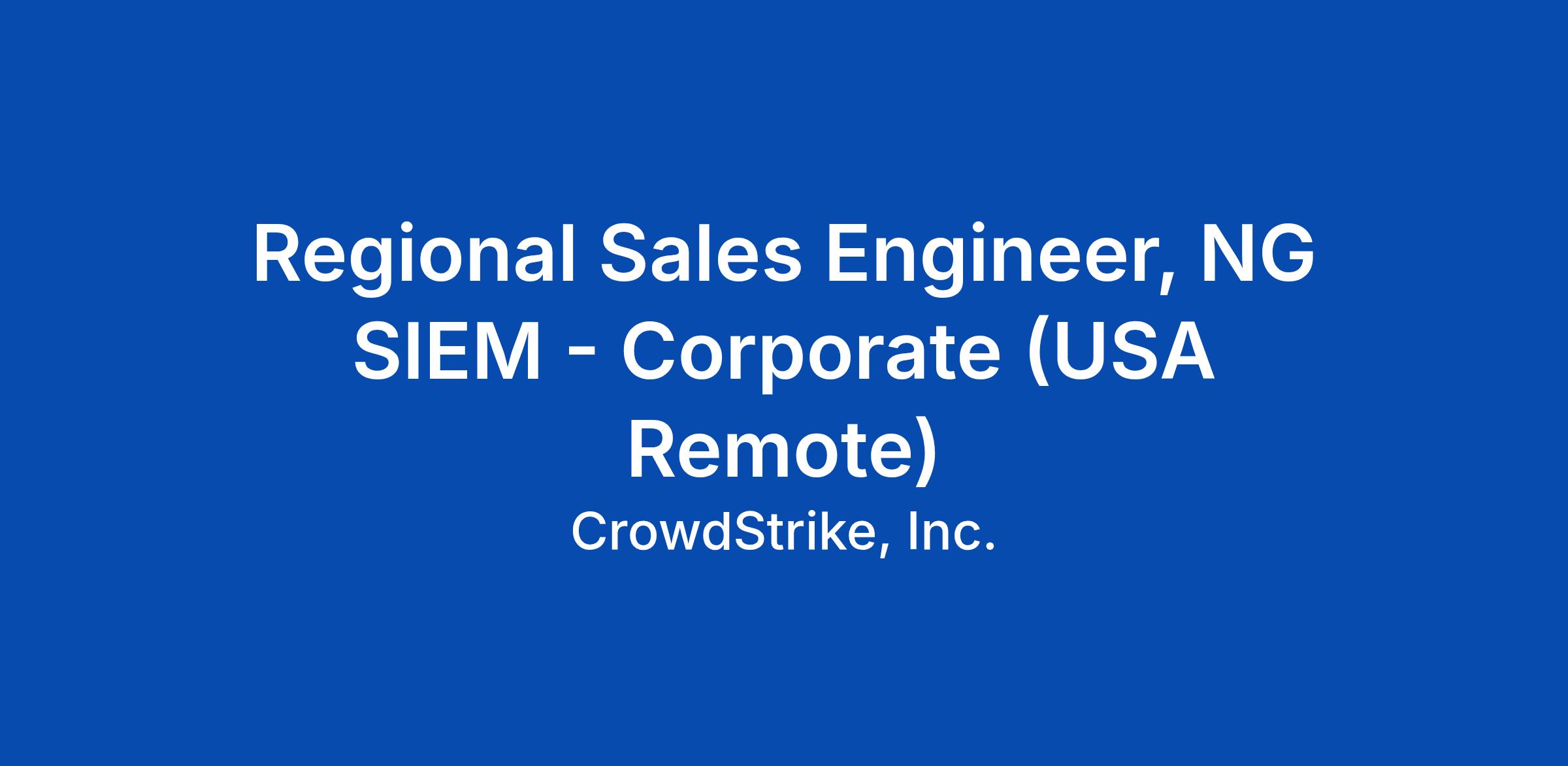 Stopping today's attacks requires an AI native modern SOC that can match the speed of adversaries. CrowdStrike Falcon NG-SIEM transforms the SOC to stop breaches with unprecedented speed. This is accomplished by unifying Falcon and third-party data, along with native threat intelligence, AI , and workflow automations. That’s why we’re not just looking for candidates with impressive resumes: we’re seeking pioneers that have helped build a NG-SIEM experience from the ground up. We’re on a quest to enrich our team with individuals who bring more than just expertise. Your experience in this new field will be the cornerstone of our journey towards innovation. At the core of this is our people. It’s important to inspire, support, and enable one another, so we've chosen a group of talented, compassionate, and fun people to work with. The work is challenging but also allows for great flexibility to prioritize off-work commitments. We’ve found this to be the perfect mix for us. If you see yourself as a great match, we’d love nothing more than for you to join us at the forefront of innovation as our new Sales Engineer!