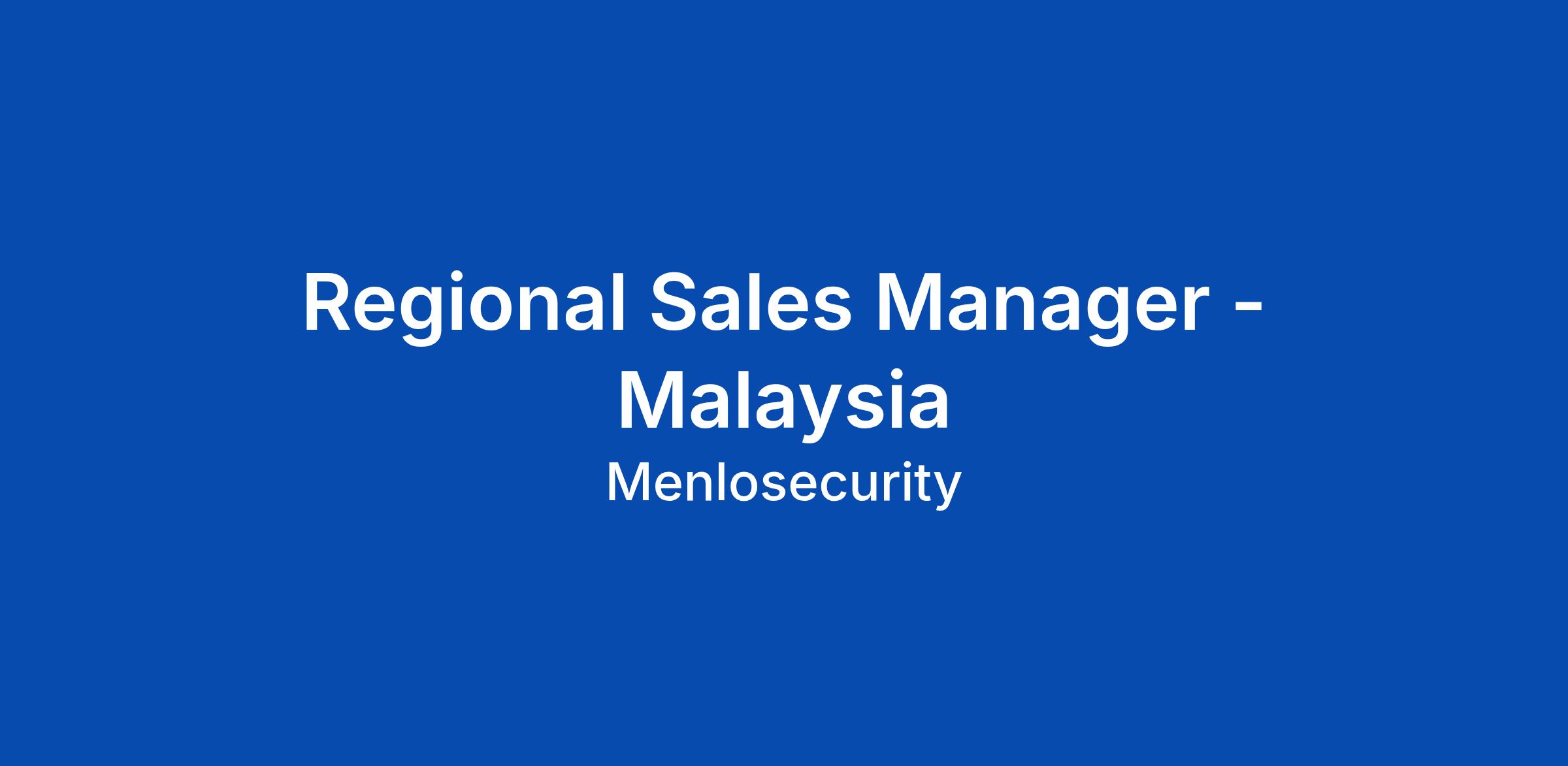 Regional Sales Manager - Malaysia