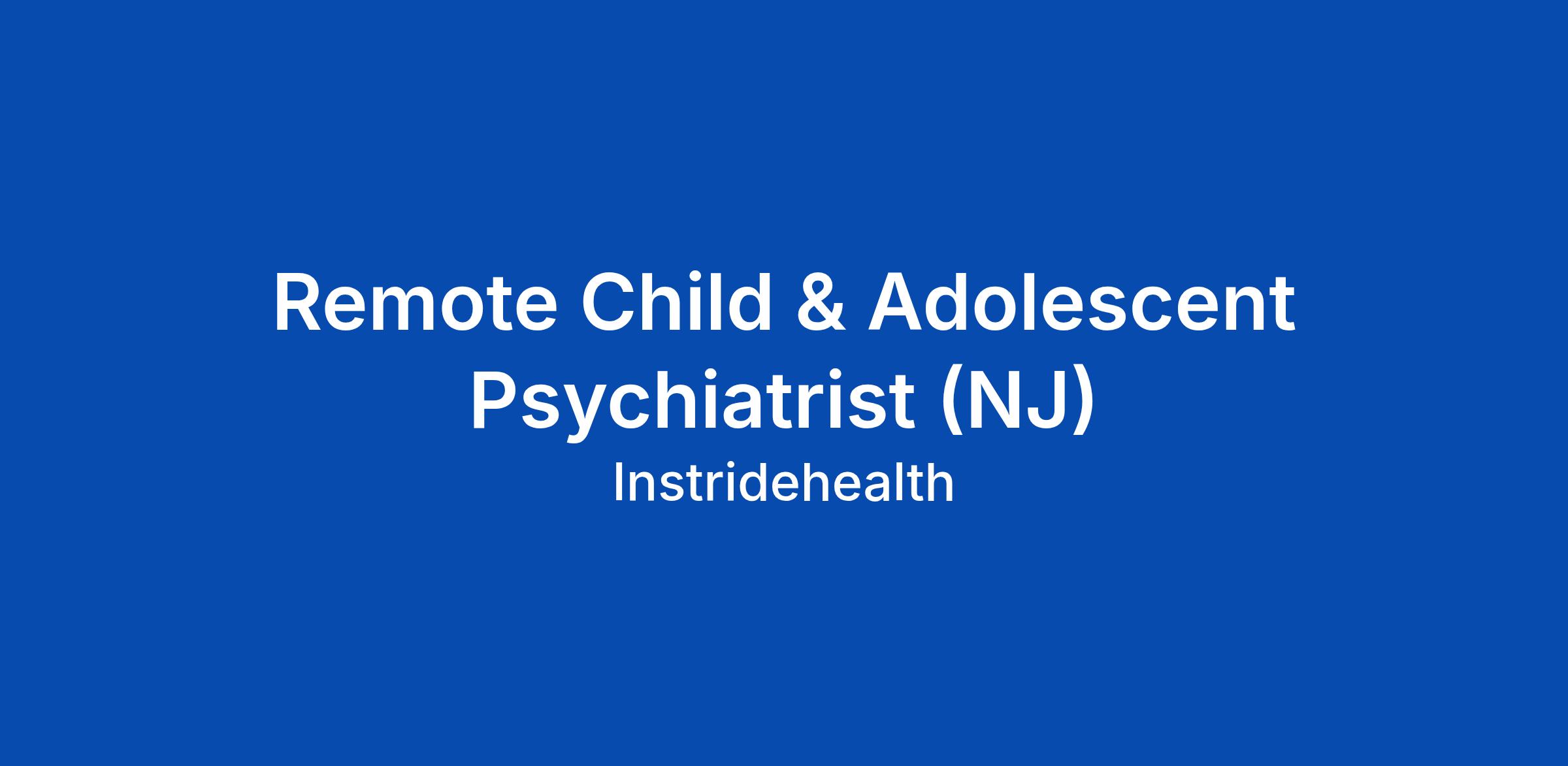 Remote Child & Adolescent Psychiatrist (NJ)