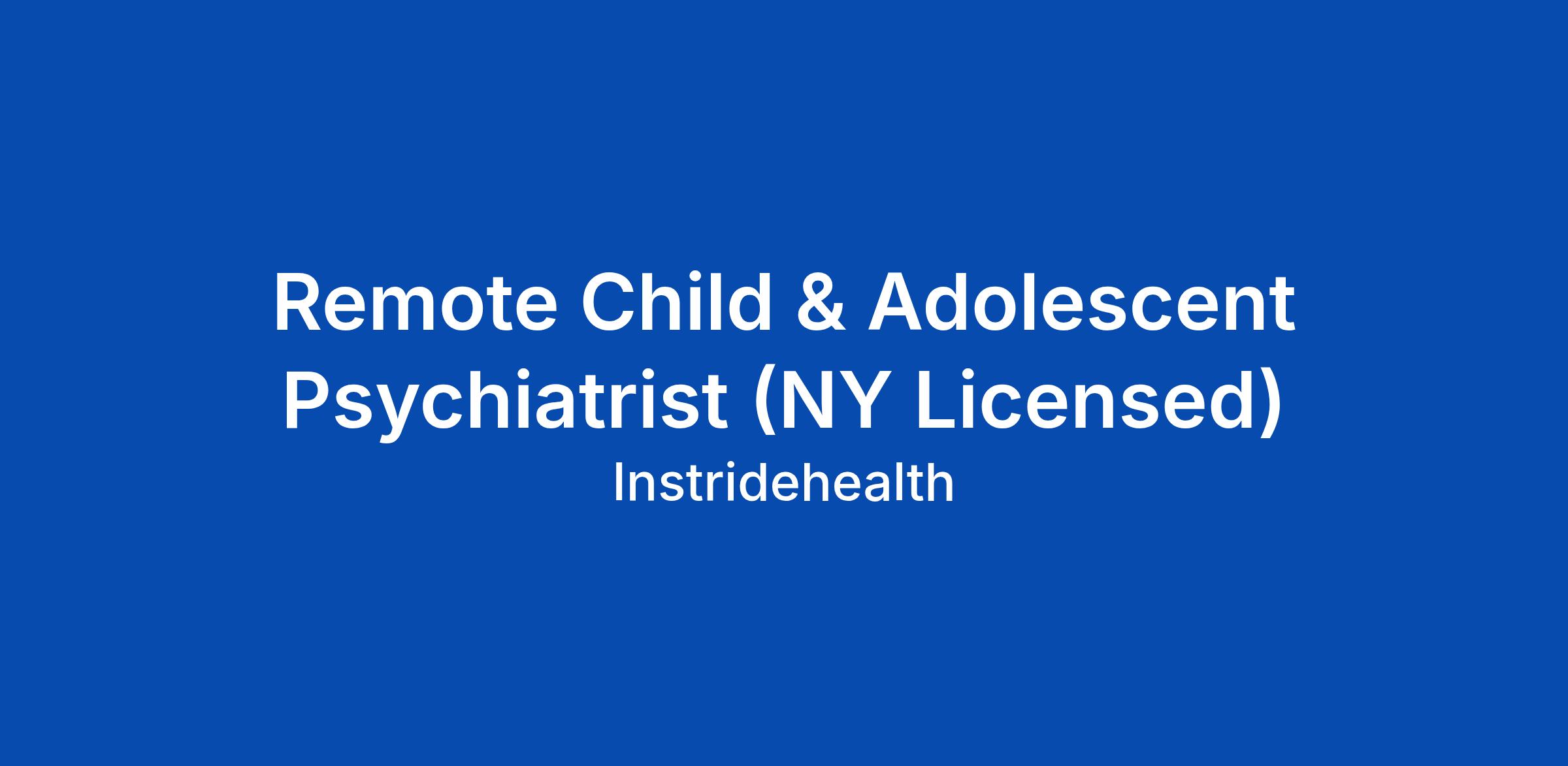 Remote Child & Adolescent Psychiatrist (NY Licensed)