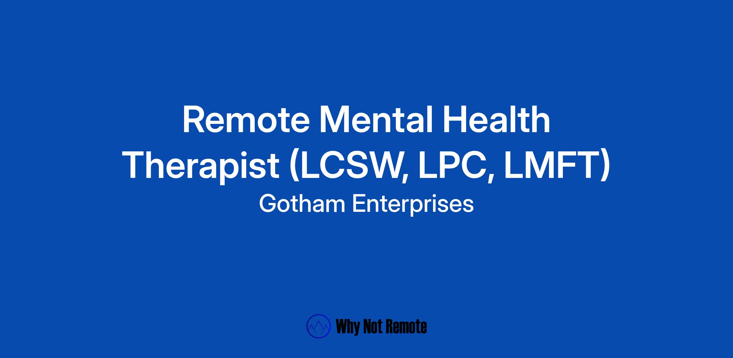DescriptionRemote Mental Health Therapist (LCSW, LPC, LMFT) – Full-Time Opportunity in NJ
