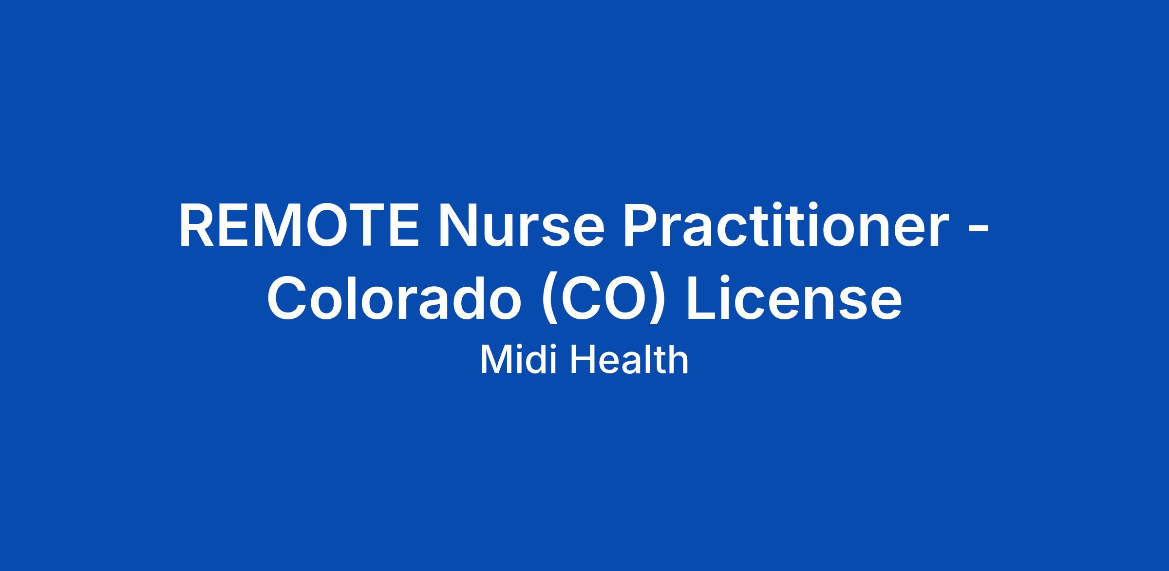 REMOTE Nurse Practitioner - Colorado (CO) License